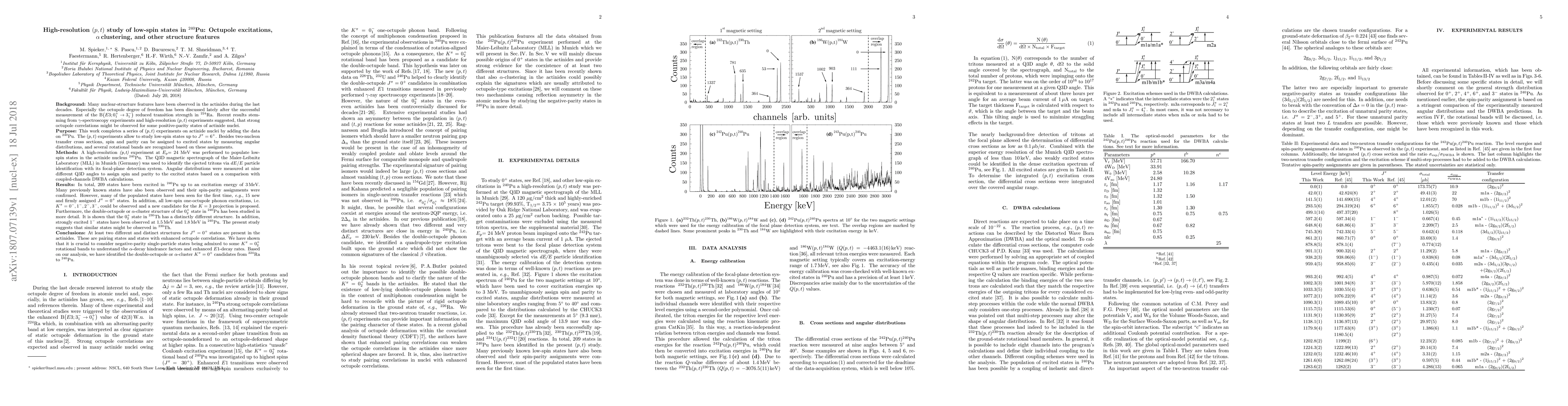 A high-resolution $(p,t)$ experiment at $E_{p}$= 24 MeV was performed to populate low-spin states in the actinide nucleus ${}^{240}$Pu. The Q3D magnetic spectrograph of the Maier-Leibnitz Laboratory (MLL) in Munich (Germany) was used to identify the ejected tritons via $dE/E$ particle identification with its focal-plane detection system. Angular distributions were measured at nine different Q3D angles to assign spin and parity to the excited states based on a comparison with coupled-channels DWBA calculations. In total, 209 states have been excited in $^{240}$Pu up to an excitation energy of 3 MeV. Many previously known states have also been observed and their spin-parity assignments were confirmed. However, many of the populated states have been seen for the first time. The low-spin one-octupole phonon excitations, i.e. $K^{\pi} = 0^-,1^-,2^-,3^-$, could be observed and a new candidate for the $K = 3$ projection is proposed. Furthermore, the double-octupole or $\alpha$-cluster structure of the $0^+_2$ state in $^{240}$Pu has been studied in more detail. It is shown that the $0^+_2$ state in $^{230}$Th has a distinctly different structure. In addition, strongly excited $1^-$ states have been observed at 1.5\,MeV and 1.8\,MeV in $^{240}$Pu. The present study suggests that similar states might be observed in $^{230}$Th. At least two different and distinct structures for $J^{\pi} = 0^+$ states are present in the actinides. These are pairing states and states with enhanced octupole correlations. We have shown that it is crucial to consider negative-parity single-particle states being admixed to some $K^{\pi} = 0^+_2$ rotational bands to understand the $\alpha$-decay hindrance factors and enhanced $E1$-decay rates. Based on our analysis, we have identified the double-octupole or $\alpha$-cluster $K^{\pi} = 0^+$ candidates from $^{224}$Ra to $^{240}$Pu.