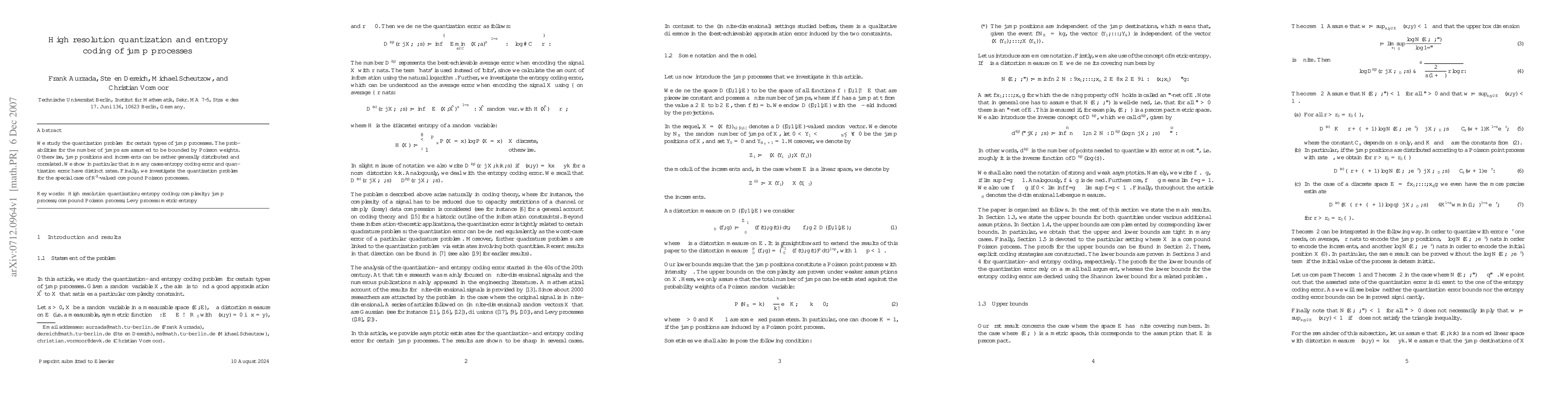 Researchers study quantization errors for jump processes with bounded Poisson probabilities, finding distinct rates for entropy coding error and quantization error in many cases. They also explore the special case of $inom{ ext{d}}{ ext{r}}$-valued compound Poisson processes in t{$inom{ ext{d}}{ ext{r}}$}.