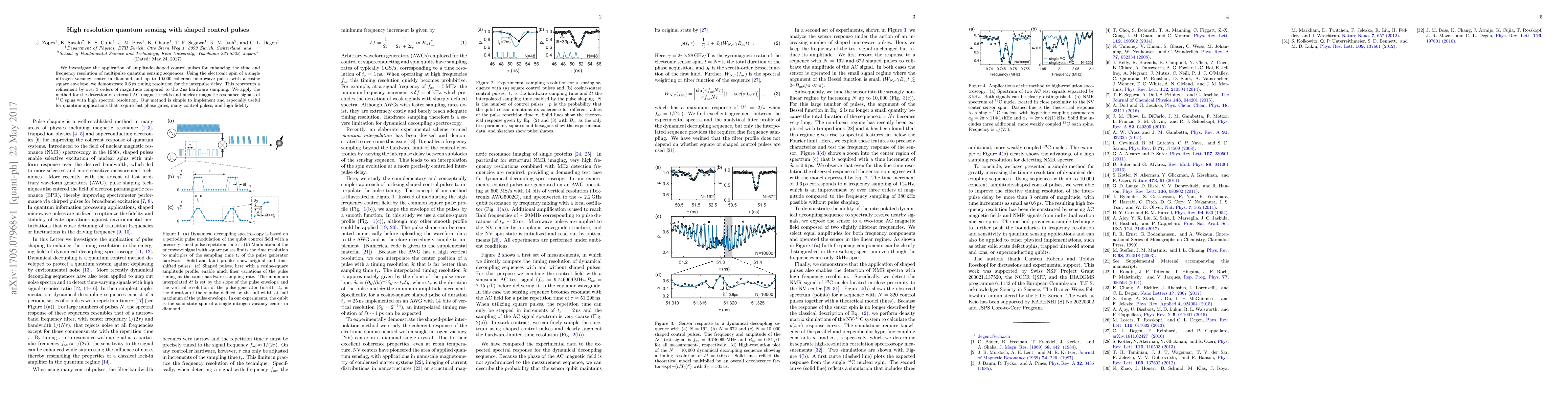 This paper demonstrates high-resolution quantum sensing using amplitude-shaped control pulses, achieving 0.6 ps timing resolution for interpulse delay in a nitrogen vacancy center. The method enhances spectral resolution for detecting AC magnetic fields and carbon-13 nuclear magnetic resonance signals.