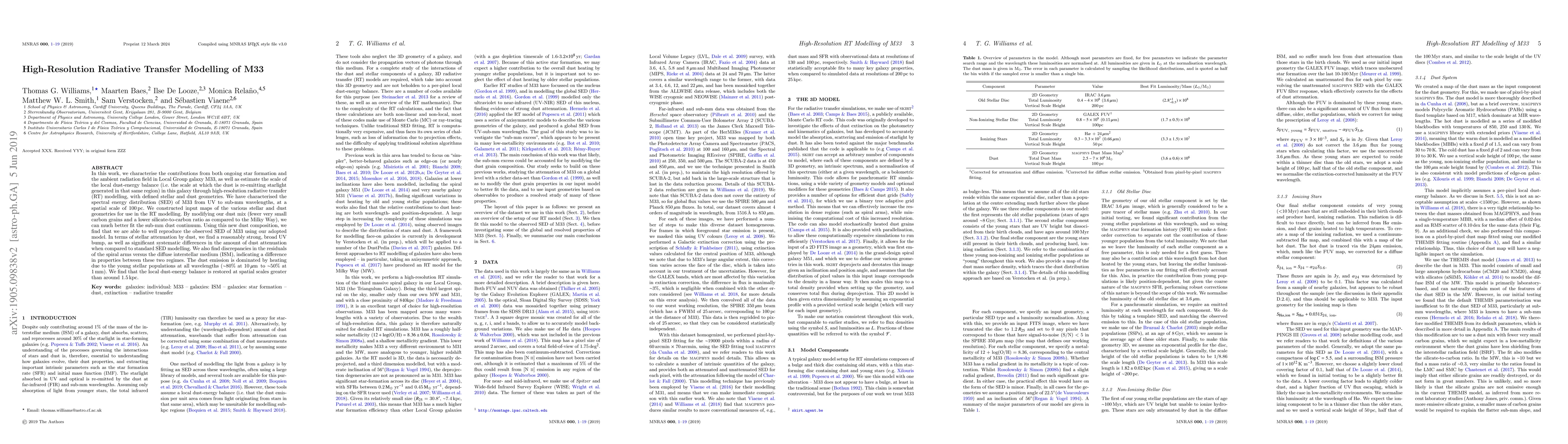 This study employs high-resolution radiative transfer modelling to characterize star formation and ambient radiation in M33, revealing significant differences in dust attenuation and composition compared to the Milky Way. The local dust-energy balance is restored at scales greater than 1.5 kpc.