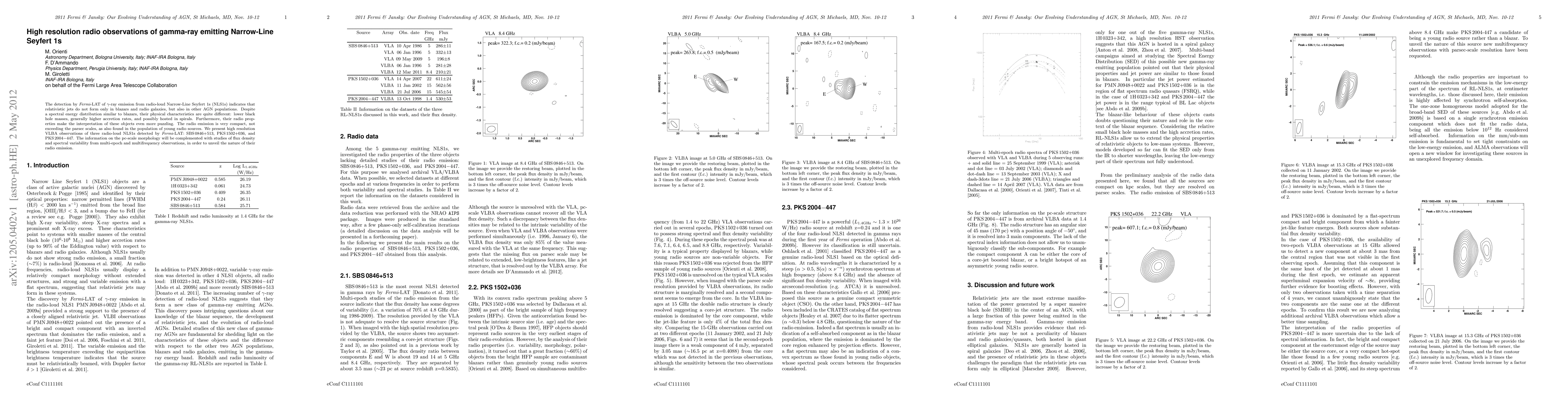 The detection by Fermi-LAT of gamma-ray emission from radio-loud Narrow-Line Seyfert 1s (NLS1s) indicates that relativistic jets do not form only in blazars and radio galaxies, but also in other AGN populations. Despite a spectral energy distribution similar to blazars, their physical characteristics are quite different: lower black hole masses, generally higher accretion rates, and possibly hosted in spirals. Furthermore, their radio properties make the interpretation of these objects even more puzzling. The radio emission is very compact, not exceeding the parsec scales, as also found in the population of young radio sources. We present high resolution VLBA observations of three radio-loud NLS1s detected by Fermi-LAT: SBS 0846+513, PKS 1502+036, and PKS 2004-447. The information on the pc-scale morphology will be complemented with studies of flux density and spectral variability from multi-epoch and multifrequency observations, in order to unveil the nature of their radio emission.