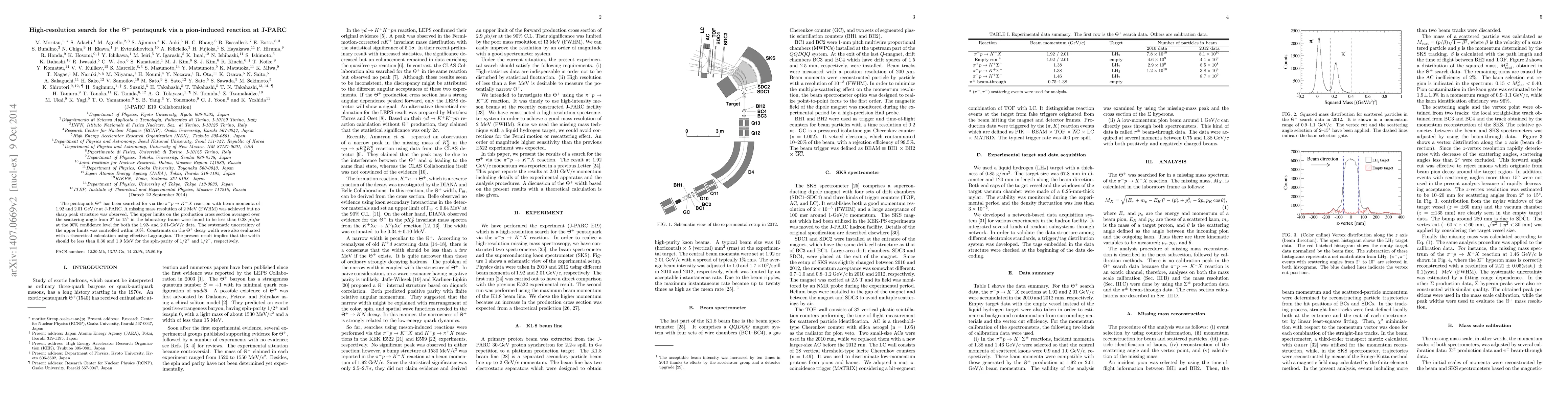 The research conducted at J-PARC using pion-induced reactions failed to observe a sharp peak structure indicative of the $Theta^+$ pentaquark. Upper limits on its production cross section were set below 0.28 $mu$b/sr at 90% confidence level for both beam momenta of 1.92 and 2.01 GeV/$c$. The study also constrained the $Theta^+$ decay width to less than 0.36 MeV for $1/2^+$ and 1.9 MeV for $1/2^-$ spin-parity.