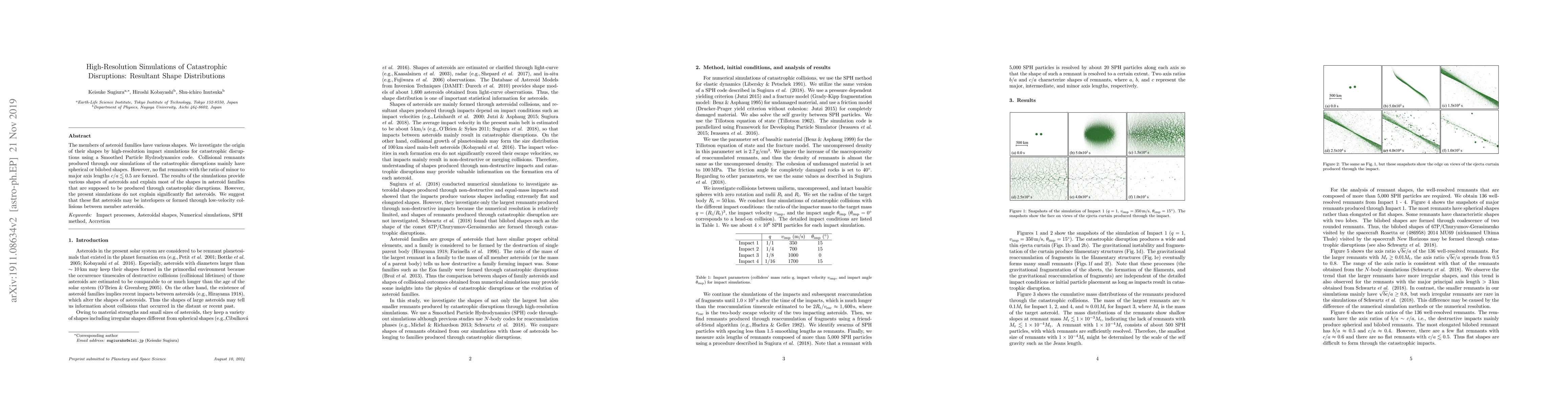 The members of asteroid families have various shapes. We investigate the origin of their shapes by high-resolution impact simulations for catastrophic disruptions using a Smoothed Particle Hydrodynamics code. Collisional remnants produced through our simulations of the catastrophic disruptions mainly have spherical or bilobed shapes. However, no flat remnants with the ratio of minor to major axis lengths c/a < 0.5 are formed. The results of the simulations provide various shapes of asteroids and explain most of the shapes in asteroid families that are supposed to be produced through catastrophic disruptions. However, the present simulations do not explain significantly flat asteroids. We suggest that these flat asteroids may be interlopers or formed through low-velocity collisions between member asteroids.