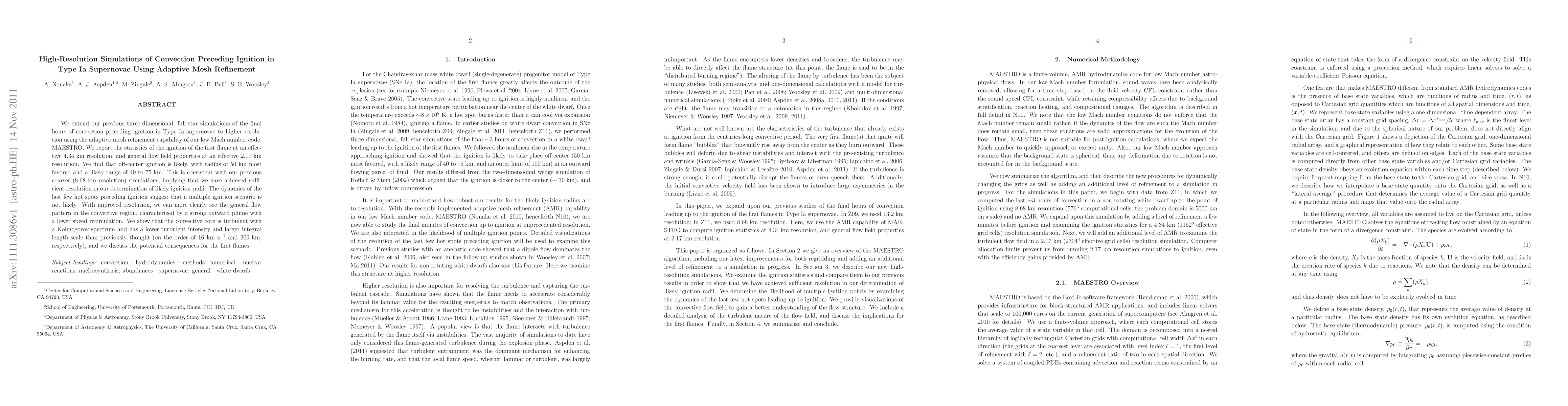 This study uses high-resolution adaptive mesh refinement simulations to investigate the convection preceding ignition in Type Ia supernovae, finding likely off-center ignition in the range of 40 to 75 km from the center. The simulations reveal a turbulent convective core with a Kolmogorov spectrum and suggest a single ignition scenario is more probable.