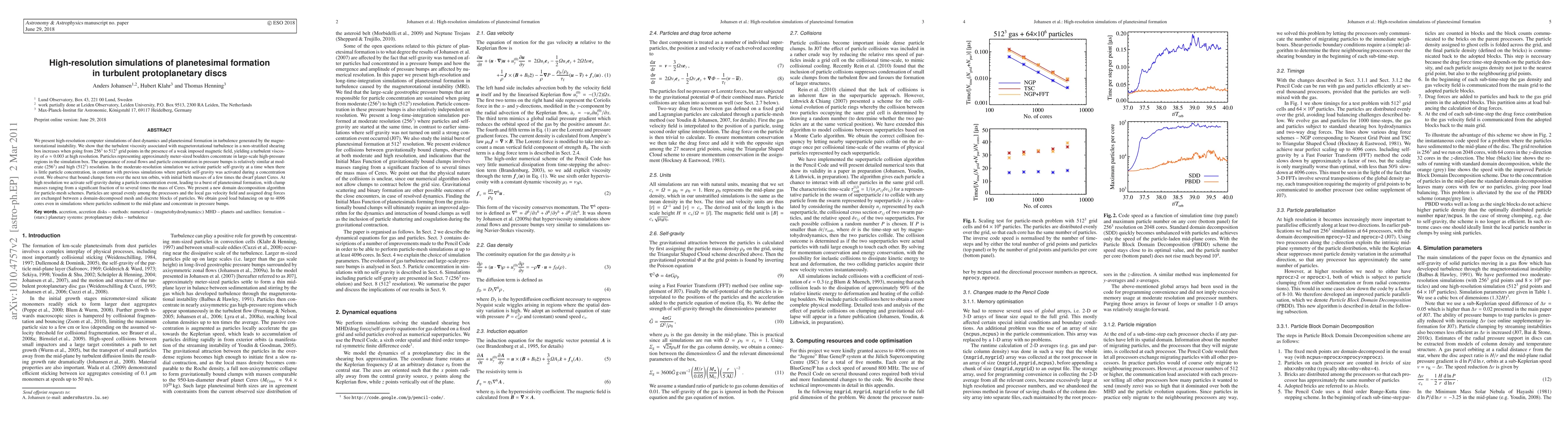 This paper presents high-resolution simulations of planetesimal formation in turbulent protoplanetary discs driven by magnetorotational instability, showing that turbulent viscosity increases with resolution, leading to significant planetesimal formation bursts when self-gravity is activated during particle concentration events. A new domain decomposition algorithm is introduced to efficiently manage large-scale simulations.