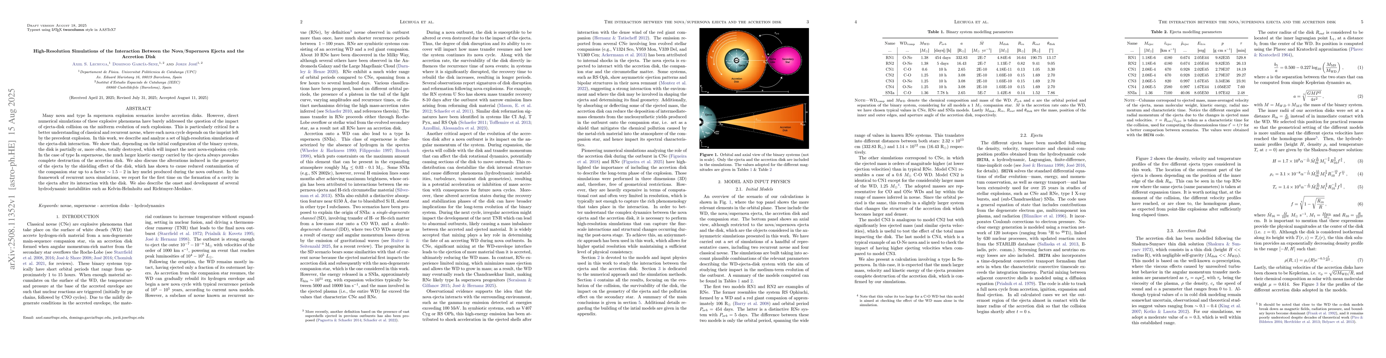 Many nova and type Ia supernova explosion scenarios involve accretion disks. However, direct numerical simulations of these explosive phenomena have barely addressed the question of the impact of ejecta-disk collision on the midterm evolution of such explosions. This is particularly critical for a better understanding of classical and recurrent novae, where each nova cycle depends on the imprint left by the precedent explosion. In this work, we describe and analyze a set of high-resolution simulations of the ejecta-disk interaction. We show that, depending on the initial configuration of the binary system, the disk is partially or, more often, totally destroyed, which will impact the next nova-explosion cycle. In the case of type Ia supernovae, the much larger kinetic energy carried by the ejecta always provokes complete destruction of the accretion disk. We also discuss the alterations induced in the geometry of the ejecta by the shielding effect of the disk, which has shown to cause reduced contamination of the companion star up to a factor \sim 1.5 - 2 in key nuclei produced during the nova outburst. In the framework of recurrent nova simulations, we report for the first time on the formation of a cavity in the ejecta after its interaction with the disk. We also describe the onset and development of several hydrodynamic instabilities such as Kelvin-Helmholtz and Richtmyer-Meshkov.
