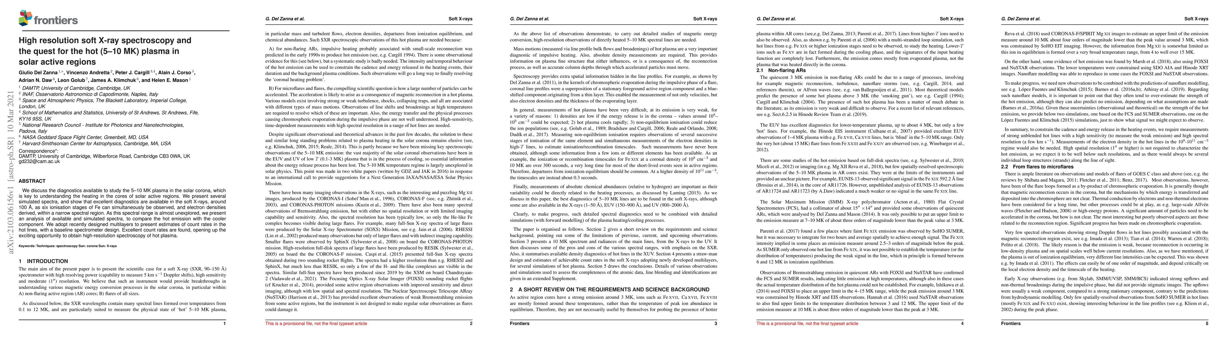 We discuss the diagnostics available to study the 5-10 MK plasma in the solar corona, which is key to understanding the heating in the cores of solar active regions. We present several simulated spectra, and show that excellent diagnostics are available in the soft X-rays, around 100 Angstroms, as six ionisation stages of Fe can simultaneously be observed, and electron densities derived, within a narrow spectral region. As this spectral range is almost unexplored, we present an analysis of available and simulated spectra, to compare the hot emission with the cooler component. We adopt recently designed multilayers to present estimates of count rates in the hot lines, with a baseline spectrometer design. Excellent count rates are found, opening up the exciting opportunity to obtain high-resolution spectroscopy of hot plasma.