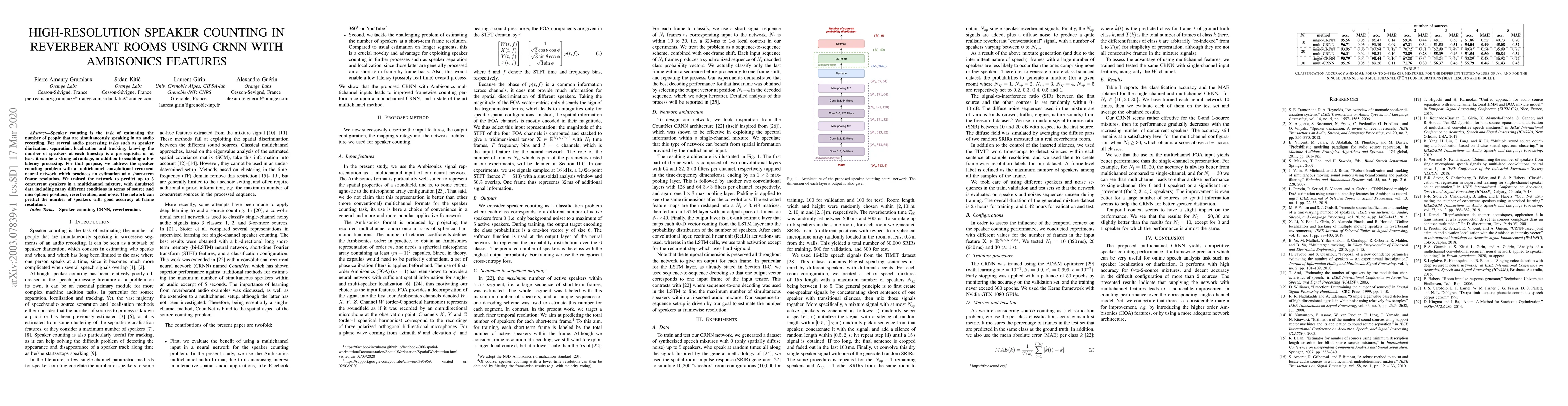 Researchers developed a machine learning model to accurately count speakers in noisy environments, enabling applications like speaker diarization and tracking. The model achieved good accuracy at short-term frame resolution using convolutional recurrent neural networks with ambisonics features.