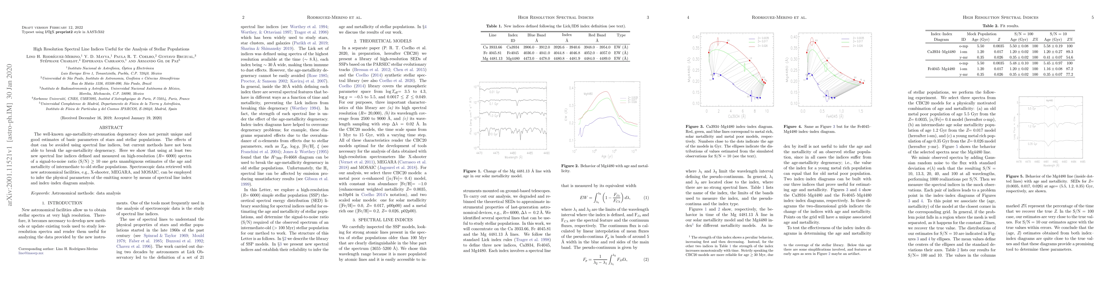 The paper introduces new high-resolution spectral line indices and index-index diagrams that can provide unambiguous age and metallicity estimates for intermediate-to-old stellar populations, breaking the age-metallicity degeneracy.