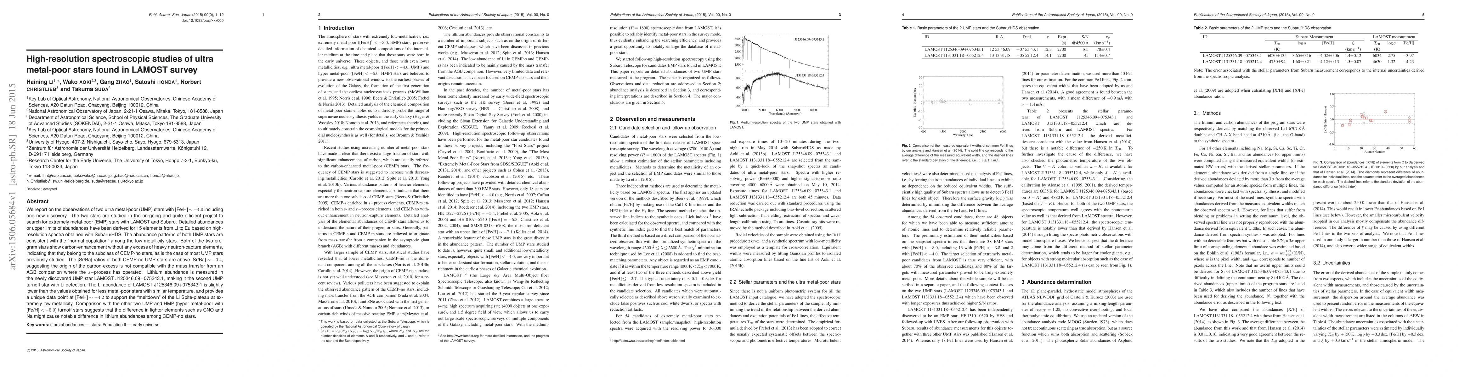 We report on the observations of two ultra metal-poor (UMP) stars with [Fe/H]~-4.0 including one new discovery. The two stars are studied in the on-going and quite efficient project to search for extremely metal-poor (EMP) stars with LAMOST and Subaru. Detailed abundances or upper limits of abundances have been derived for 15 elements from Li to Eu based on high-resolution spectra obtained with Subaru/HDS. The abundance patterns of both UMP stars are consistent with the "normal-population" among the low-metallicity stars. Both of the two program stars show carbon-enhancement without any excess of heavy neutron-capture elements, indicating that they belong to the subclass of CEMP-no stars, as is the case of most UMP stars previously studied. The [Sr/Ba] ratios of both CEMP-no UMP stars are above [Sr/Ba]~-0.4, suggesting the origin of the carbon-excess is not compatible with the mass transfer from an AGB companion where the s-process has operated. Lithium abundance is measured in the newly discovered UMP star LAMOST J125346.09+075343.1, making it the second UMP turnoff star with Li detection. The Li abundance of LAMOST J125346.09+075343.1 is slightly lower than the values obtained for less metal-poor stars with similar temperature, and provides a unique data point at [Fe/H]~-4.2 to support the "meltdown" of the Li Spite-plateau at extremely low metallicity. Comparison with the other two UMP and HMP (hyper metal-poor with [Fe/H]<-5.0) turnoff stars suggests that the difference in lighter elements such as CNO and Na might cause notable difference in lithium abundances among CEMP-no stars.