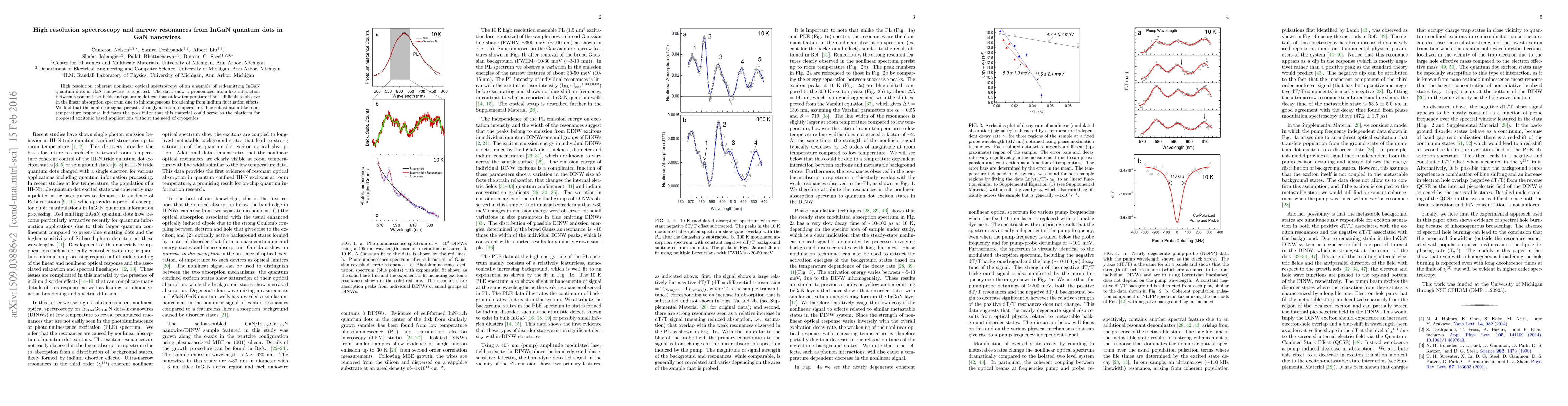 This paper reports high-resolution spectroscopy of InGaN quantum dots in GaN nanowires, revealing strong atom-like interactions with laser fields at room temperature, suggesting potential for excitonic-based applications without cryogenic cooling.