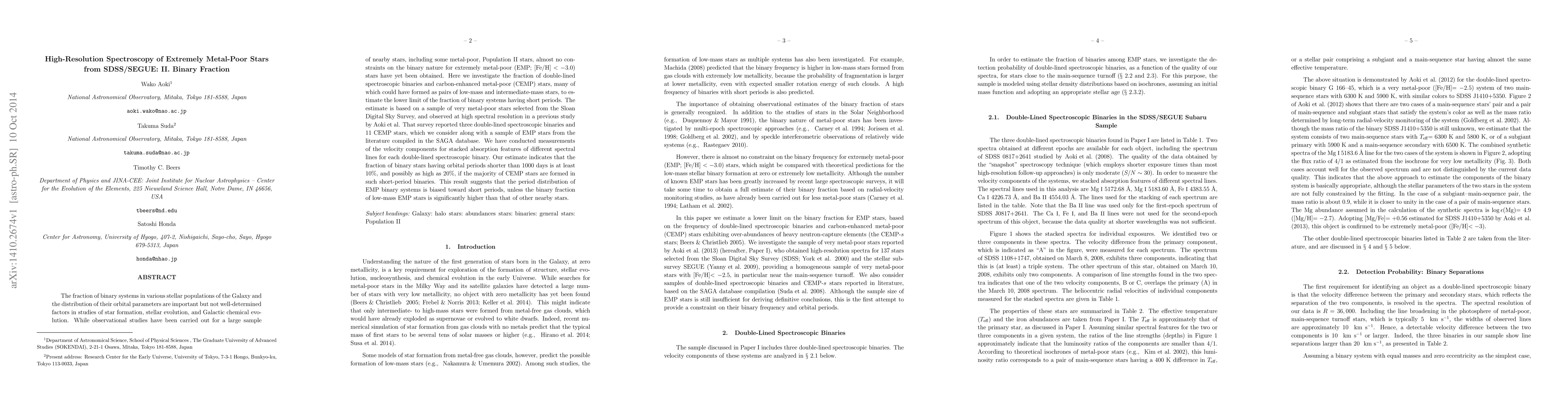 This study investigates the binary fraction among extremely metal-poor stars using high-resolution spectroscopy from the SDSS/SEGUE survey. The findings suggest that at least 10% of these stars are in binary systems with periods shorter than 1000 days, potentially rising to 20% if most carbon-enhanced metal-poor stars form in short-period binaries.
