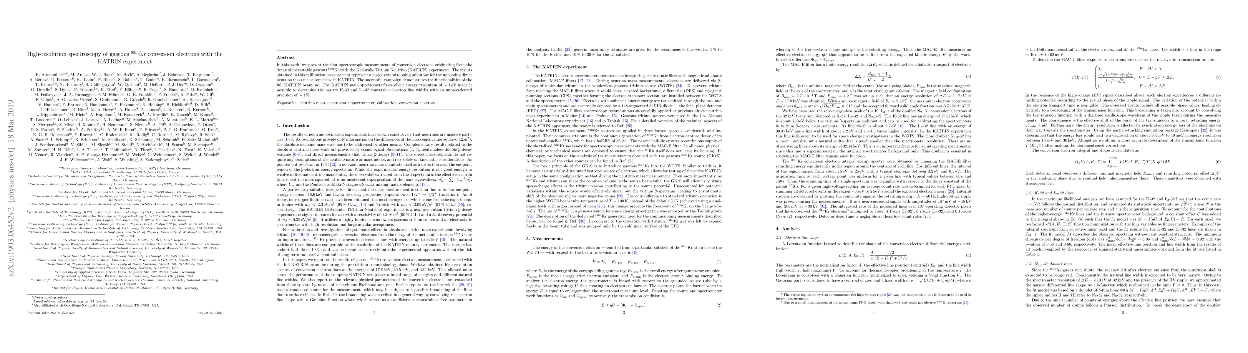 This paper reports the first spectroscopic measurements of conversion electrons from the decay of metastable gaseous $^\mathrm{83m}$Kr using the KATRIN experiment, achieving an unprecedented precision of ~1% in determining electron line widths. This successful calibration marks a significant milestone for the upcoming direct neutrino mass measurement.