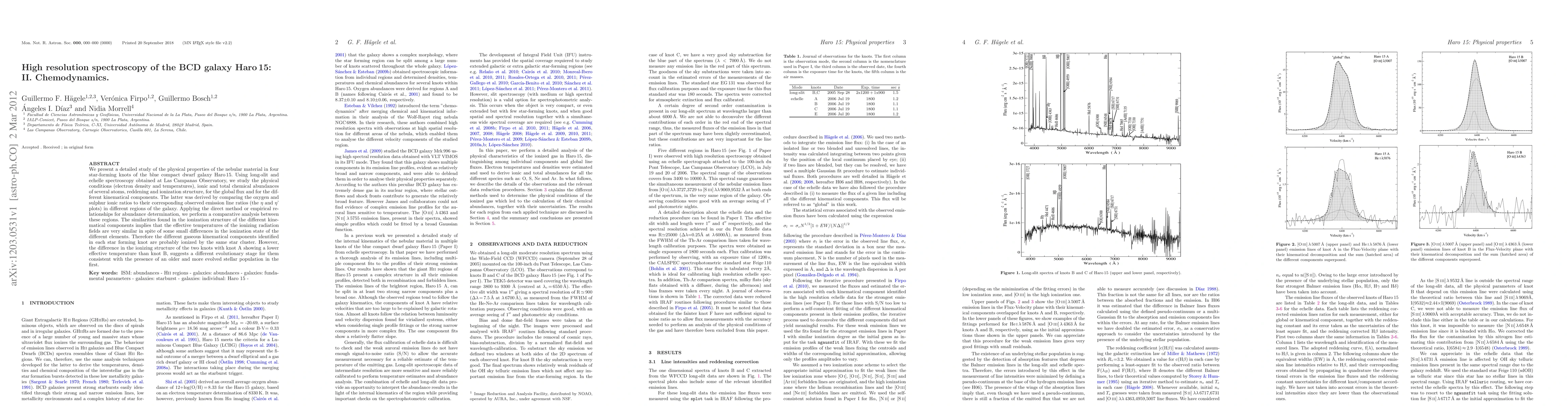 We present a detailed study of the physical properties of the nebular material in four star-forming knots of the blue compact dwarf galaxy Haro 15. Using long-slit and echelle spectroscopy obtained at Las Campanas Observatory, we study the physical conditions (electron density and temperatures), ionic and total chemical abundances of several atoms, reddening and ionization structure, for the global flux and for the different kinematical components. The latter was derived by comparing the oxygen and sulphur ionic ratios to their corresponding observed emission line ratios (the $\eta$ and $\eta$' plots) in different regions of the galaxy. Applying the direct method or empirical relationships for abundance determination, we perform a comparative analysis between these regions. The similarities found in the ionization structure of the different kinematical components implies that the effective temperatures of the ionizing radiation fields are very similar in spite of some small differences in the ionization state of the different elements. Therefore the different gaseous kinematical components identified in each star forming knot are probably ionized by the same star cluster. However, the difference in the ionizing structure of the two knots with knot A showing a lower effective temperature than knot B, suggests a different evolutionary stage for them consistent with the presence of an older and more evolved stellar population in the first.