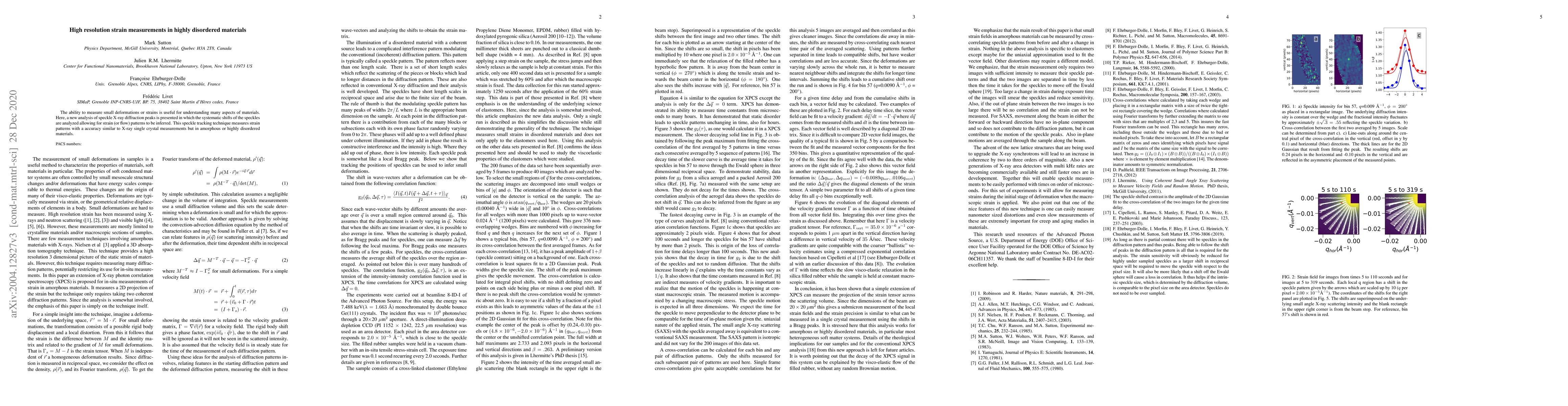 Researchers developed a technique to measure small strains in disordered materials with high accuracy, using speckle diffraction peaks. This method allows for strain patterns to be inferred with precision similar to x-ray single crystal measurements.