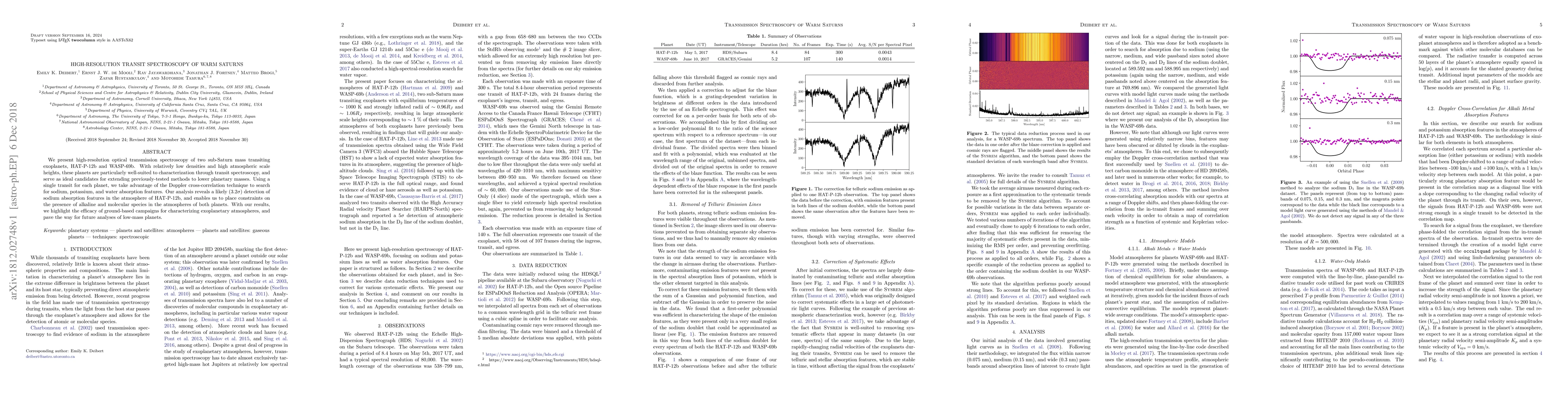 We present high-resolution optical transmission spectroscopy of two sub-Saturn mass transiting exoplanets, HAT-P-12b and WASP-69b. With relatively low densities and high atmospheric scale heights, these planets are particularly well-suited to characterization through transit spectroscopy, and serve as ideal candidates for extending previously-tested methods to lower planetary masses. Using a single transit for each planet, we take advantage of the Doppler cross-correlation technique to search for sodium, potassium, and water absorption features. Our analysis reveals a likely ($3.2\sigma$) detection of sodium absorption features in the atmosphere of HAT-P-12b, and enables us to place constraints on the presence of alkaline and molecular species in the atmospheres of both planets. With our results, we highlight the efficacy of ground-based campaigns for characterizing exoplanetary atmospheres, and pave the way for future analyses of low-mass planets.