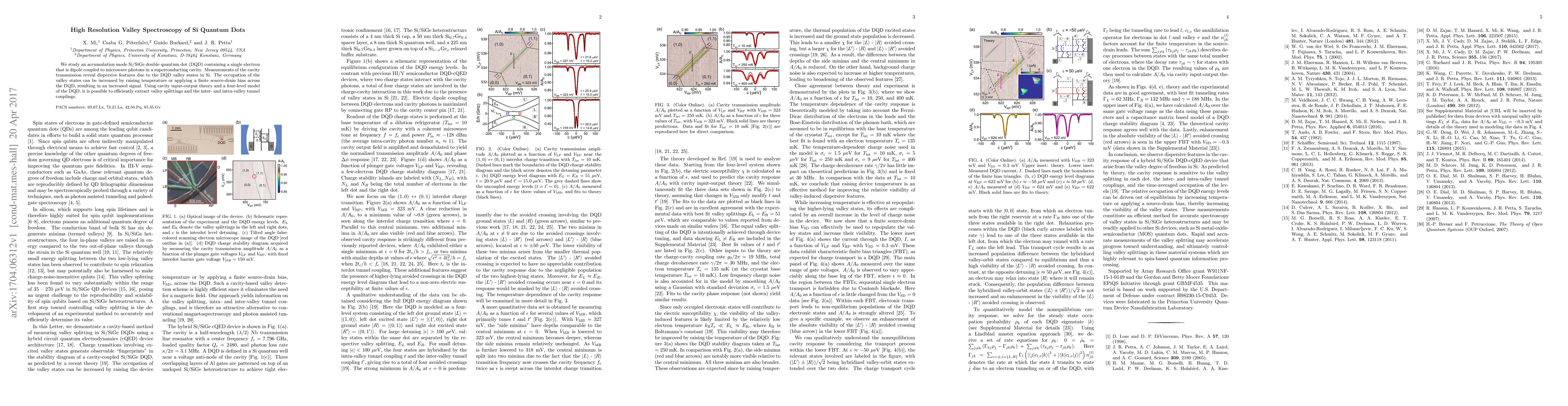 This paper investigates high-resolution valley spectroscopy in Si/SiGe double quantum dots, revealing dispersive features in cavity transmission due to valley states. Valley state occupation increases with temperature or bias, allowing extraction of valley splittings and tunnel couplings using cavity input-output theory and a four-level model.