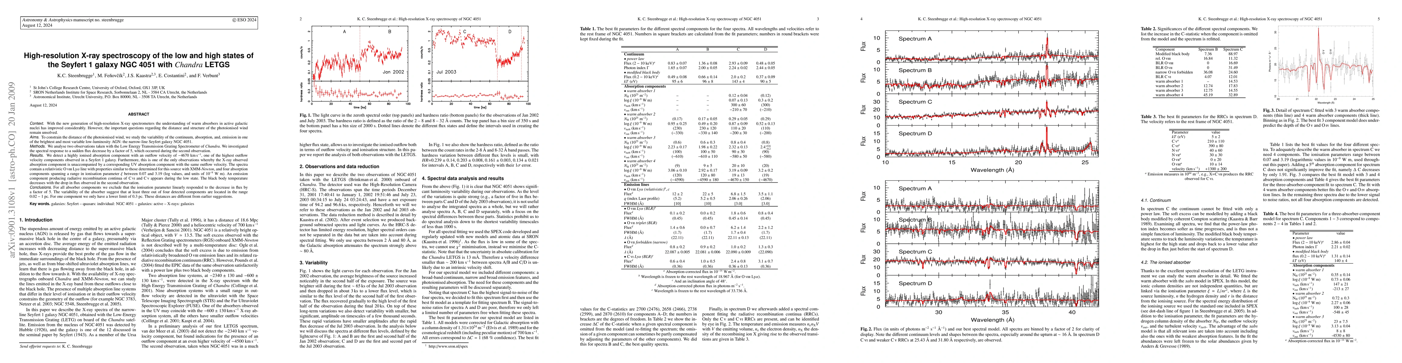 This study, using Chandra's Low Energy Transmission Grating Spectrometer, analyzed NGC 4051, a Seyfert 1 galaxy. It detected a highly ionized absorption component with an outflow velocity of -4670 km/s, one of the highest observed. The research also found a relativistic O VIII Ly alpha line, four absorption components varying in ionization, and an emission component producing C VI and C V radiative recombination continua during the galaxy's low flux state. The black body temperature dropped with the flux decrease. The variability suggests the absorber components are located within 0.02-1 pc of the central source.