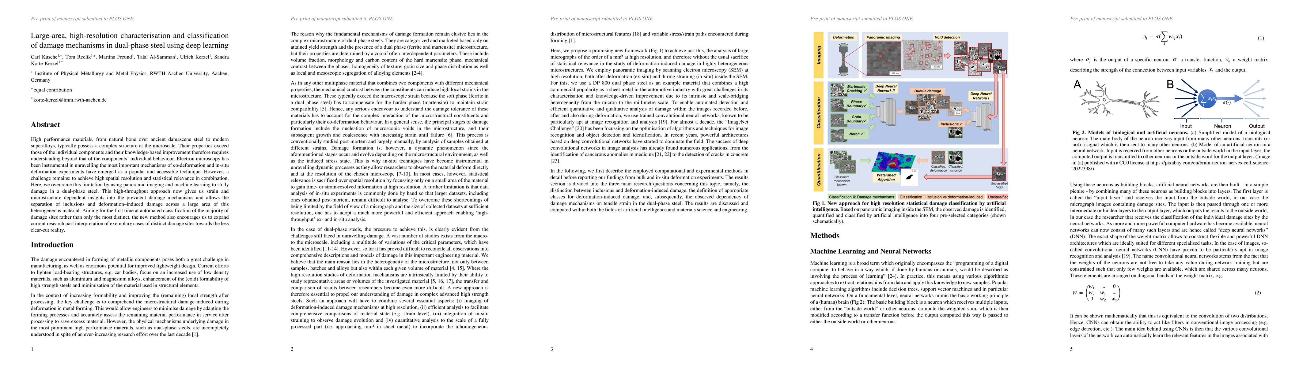 This paper employs panoramic imaging and machine learning to analyze damage in dual-phase steel, achieving high spatial resolution and statistical relevance. The approach provides comprehensive insights into strain and microstructure dependencies across a large area, moving beyond isolated case studies to a broader understanding of damage mechanisms.