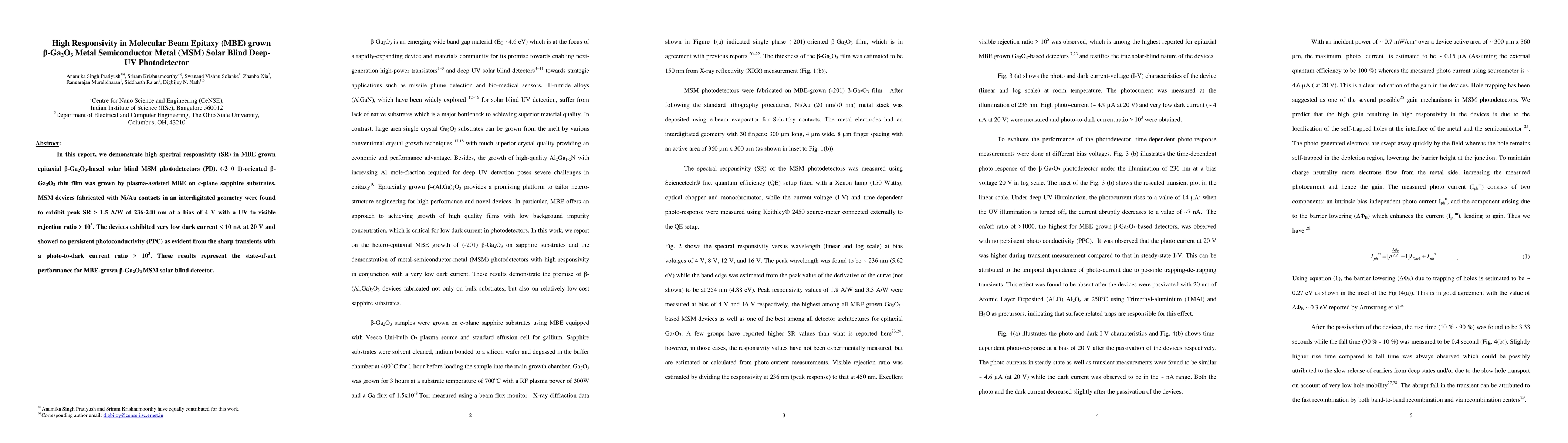 Researchers have created high-performing solar blind photodetectors using {eta}-Ga2O3 grown through molecular beam epitaxy, exhibiting record-breaking spectral responsivity and UV to visible rejection ratios.