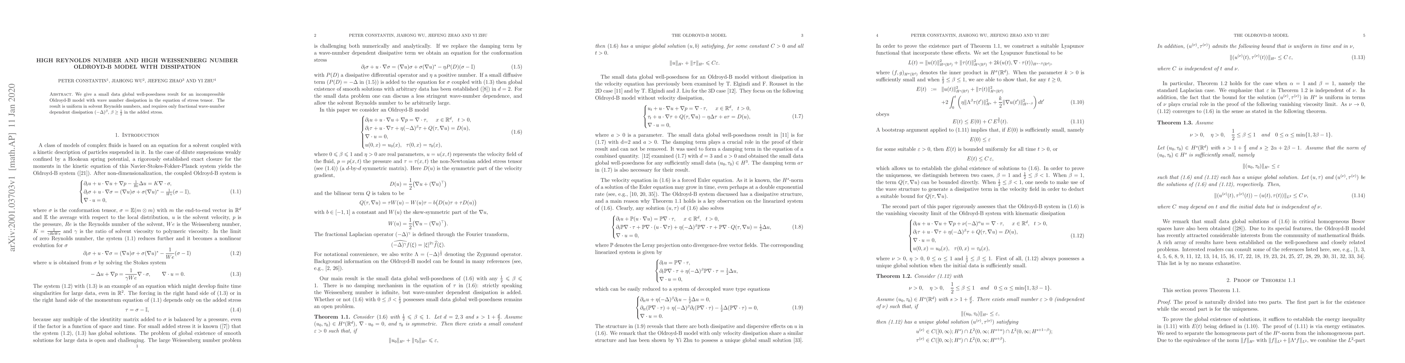 Researchers have established a global well-posedness result for an incompressible Oldroyd-B model with dissipation, showing stability across various solvent Reynolds numbers and requiring only fractional wave-number dependent dissipation.