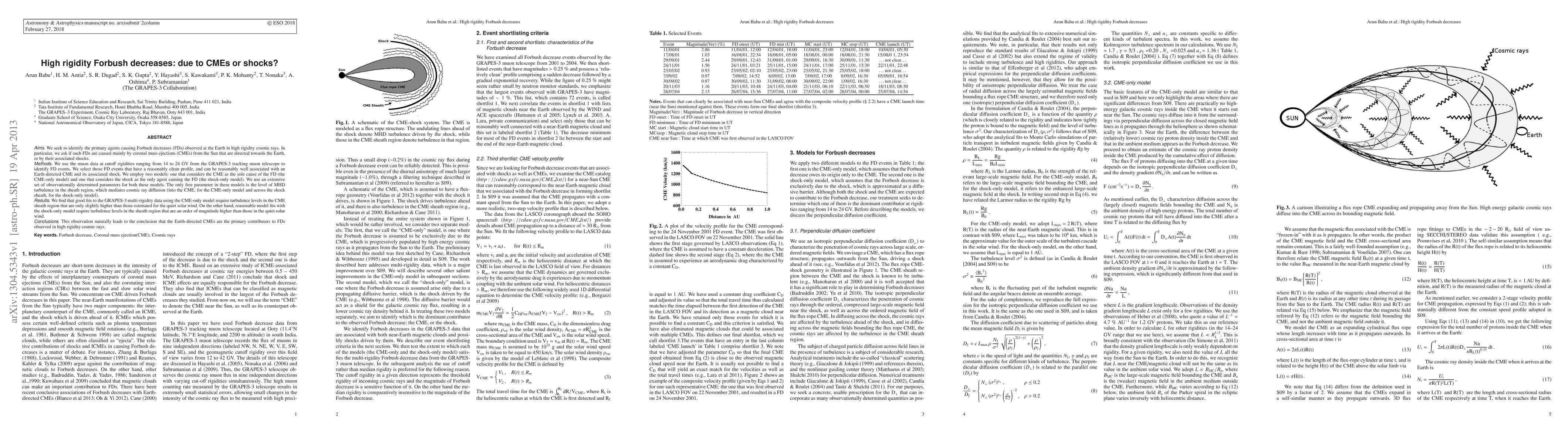 This study investigates the primary cause of Forbush decreases (FDs) in high rigidity cosmic rays, determining whether they are mainly due to Earth-directed coronal mass ejections (CMEs) or their associated shocks. The analysis using GRAPES-3 muon data and two models suggests that CMEs are the primary contributors to FDs, as the CME-only model requires lower turbulence levels than the shock-only model.