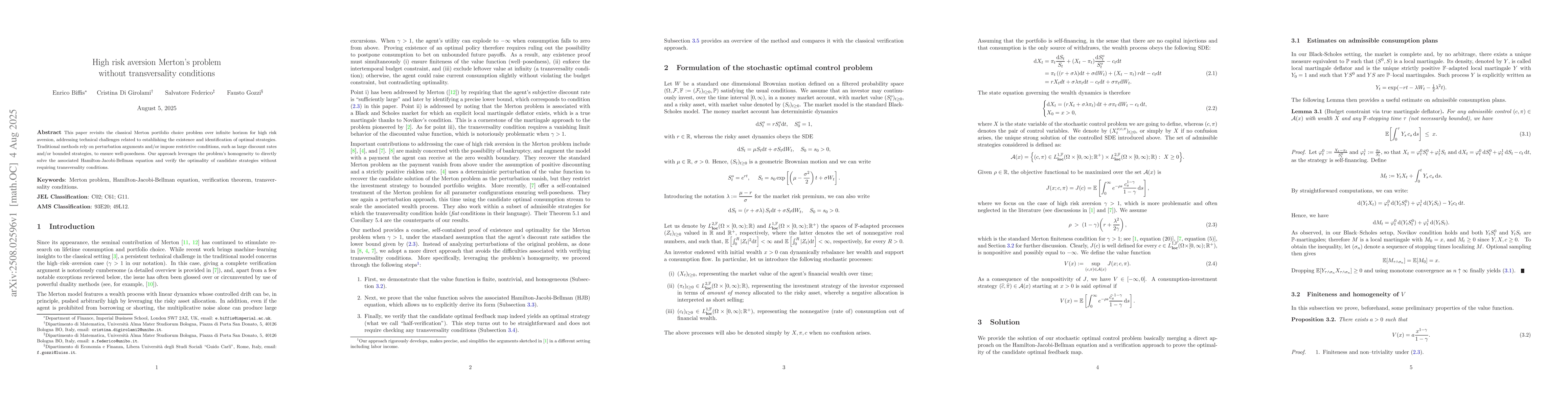 This paper revisits the classical Merton portfolio choice problem over infinite horizon for high risk aversion, addressing technical challenges related to establishing the existence and identification of optimal strategies. Traditional methods rely on perturbation arguments and/or impose restrictive conditions, such as large discount rates and/or bounded strategies, to ensure well-posedness. Our approach leverages the problem's homogeneity to directly solve the associated Hamilton-Jacobi-Bellman equation and verify the optimality of candidate strategies without requiring transversality conditions.
