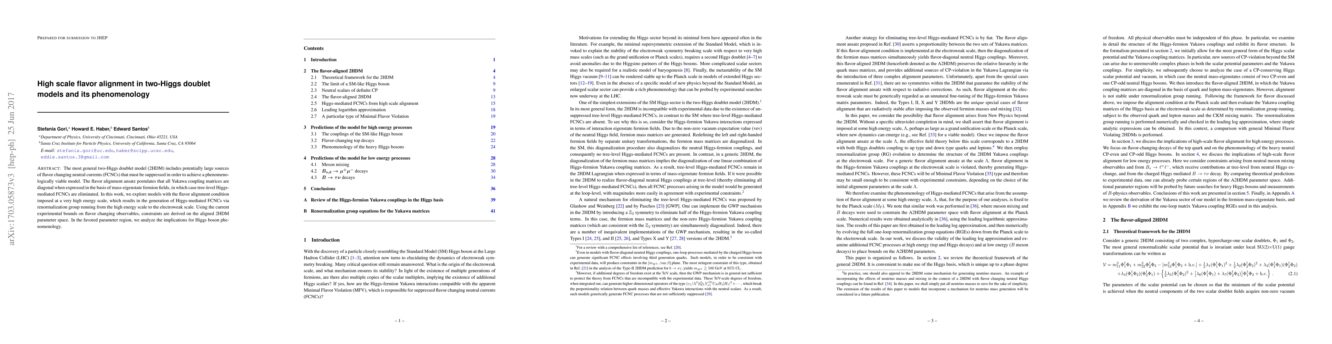 This paper investigates high-scale flavor alignment in two-Higgs doublet models (2HDM) to suppress tree-level flavor changing neutral currents (FCNCs) while allowing FCNCs via renormalization group running. It derives constraints on the aligned 2HDM parameter space using experimental bounds and analyzes the implications for Higgs phenomenology.
