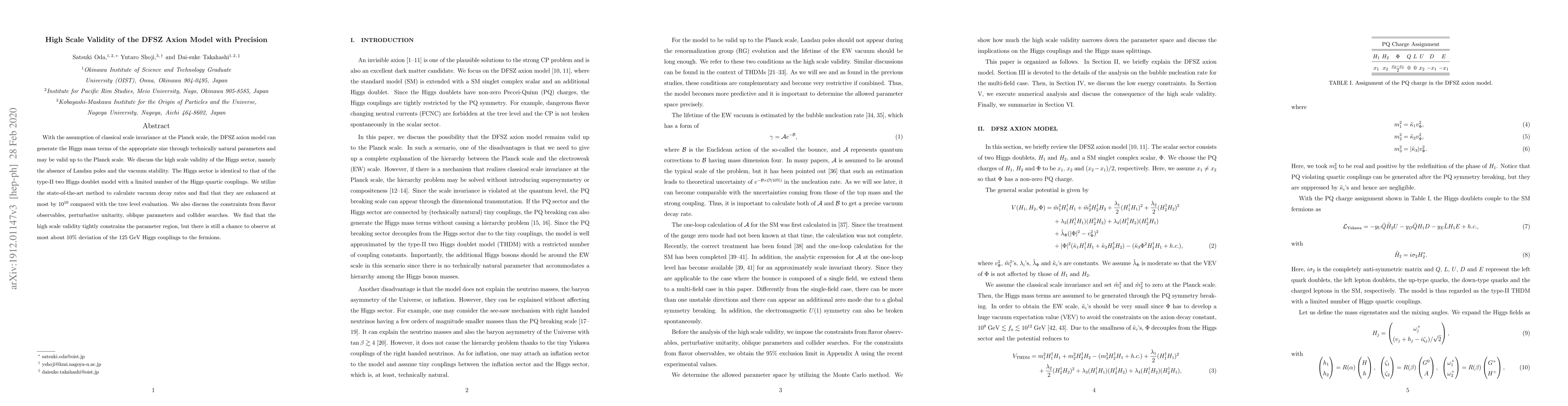 The work stands out by combining high-scale validity analysis with detailed constraints from various observables, offering a comprehensive view of the DFSZ axion model's viability up to the Planck scale.