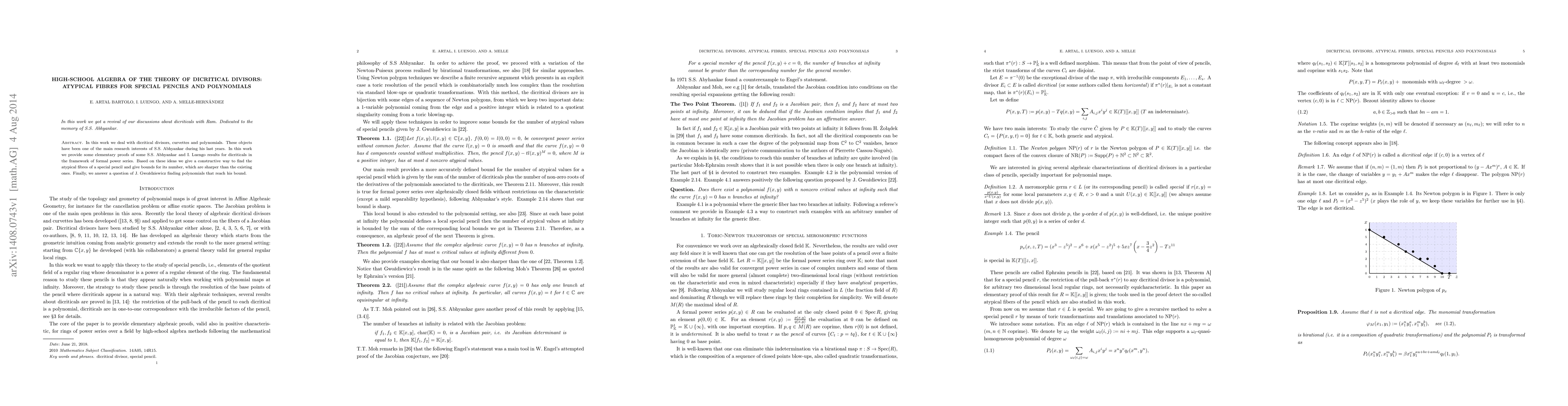This paper provides elementary proofs of results by S.S. Abhyankar and I. Luengo on dicritical divisors using formal power series. It also offers a constructive method to determine the atypical fibres of special pencils with sharper bounds and resolves a question regarding polynomials reaching a specific bound.