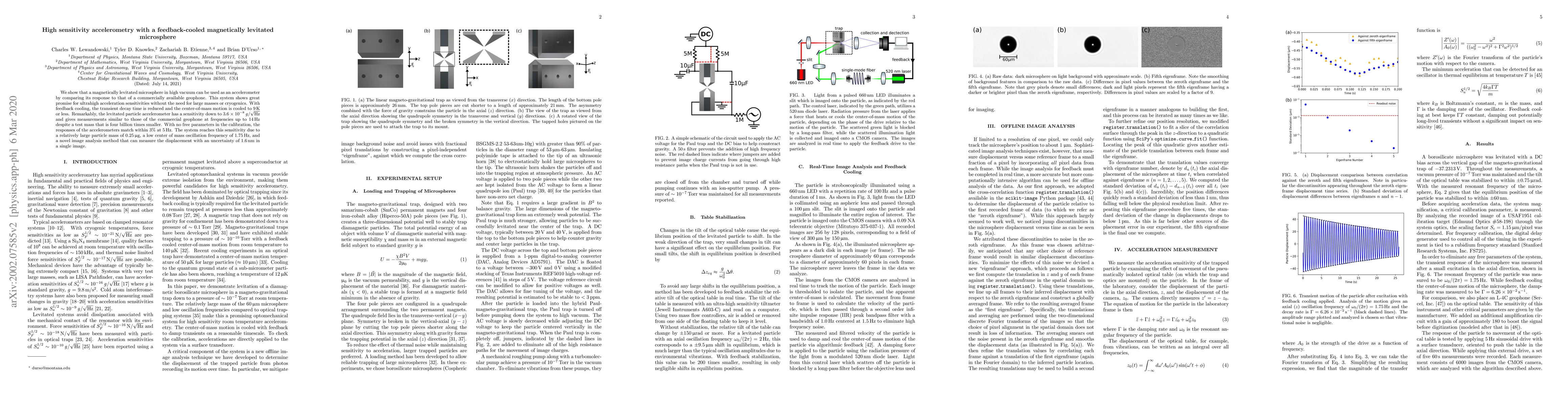 This research demonstrates a highly sensitive accelerometer using a magnetically levitated microsphere in a high vacuum, achieving sensitivity down to \SI{3.6e-8}{\mathit{g}/\sqrt{Hz}} without large masses or cryogenics. The system's high sensitivity is due to a combination of feedback cooling, a relatively large test mass, and advanced image analysis techniques.