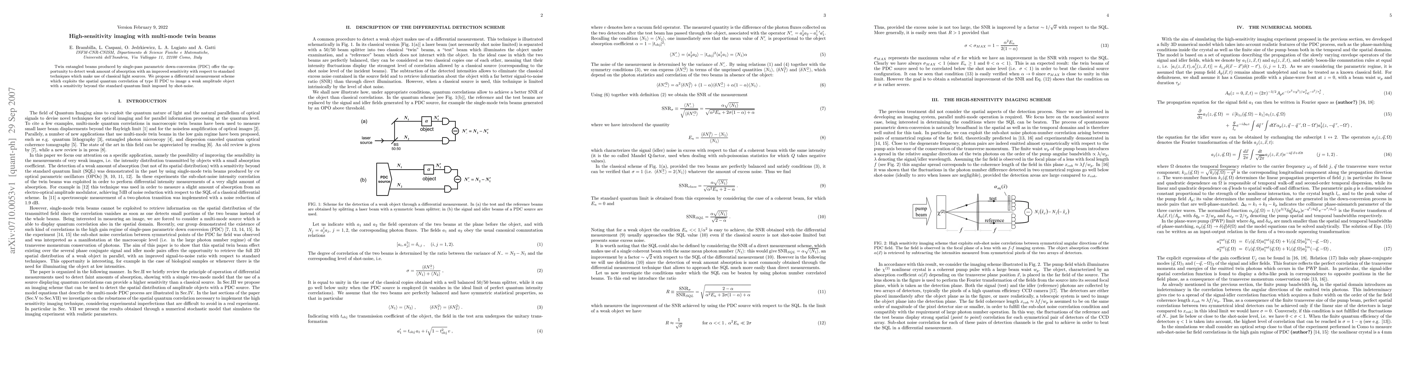 This paper proposes a novel imaging technique using twin entangled beams from parametric down-conversion to detect weak absorption with enhanced sensitivity, surpassing the standard quantum limit imposed by shot-noise through a differential measurement scheme.
