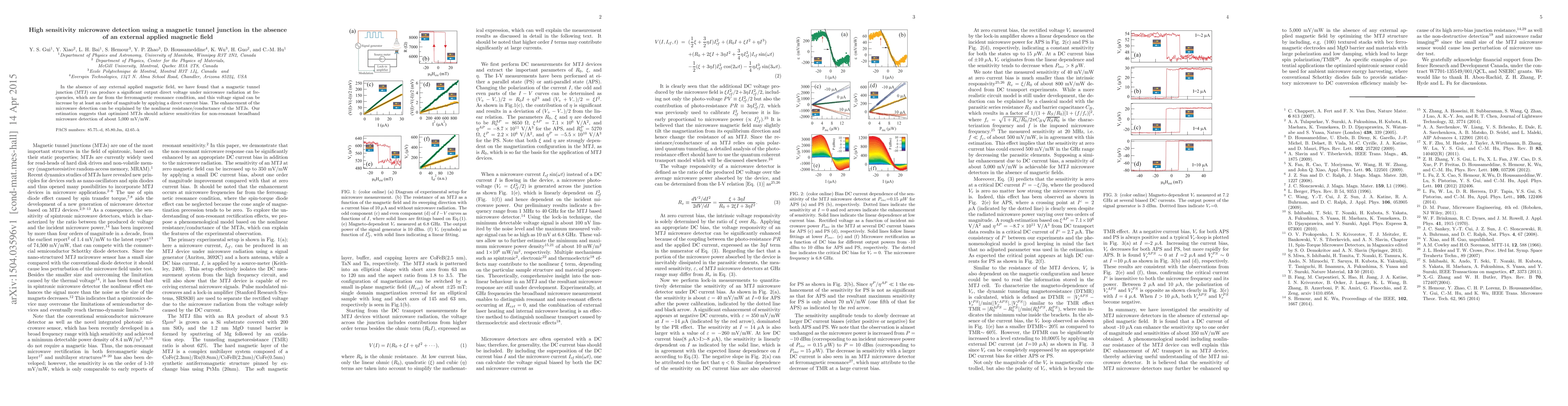Researchers discovered that magnetic tunnel junctions can detect microwave radiation without an external applied magnetic field, achieving sensitivities of up to 5,000 mV/mW through nonlinear resistance/conductance effects.