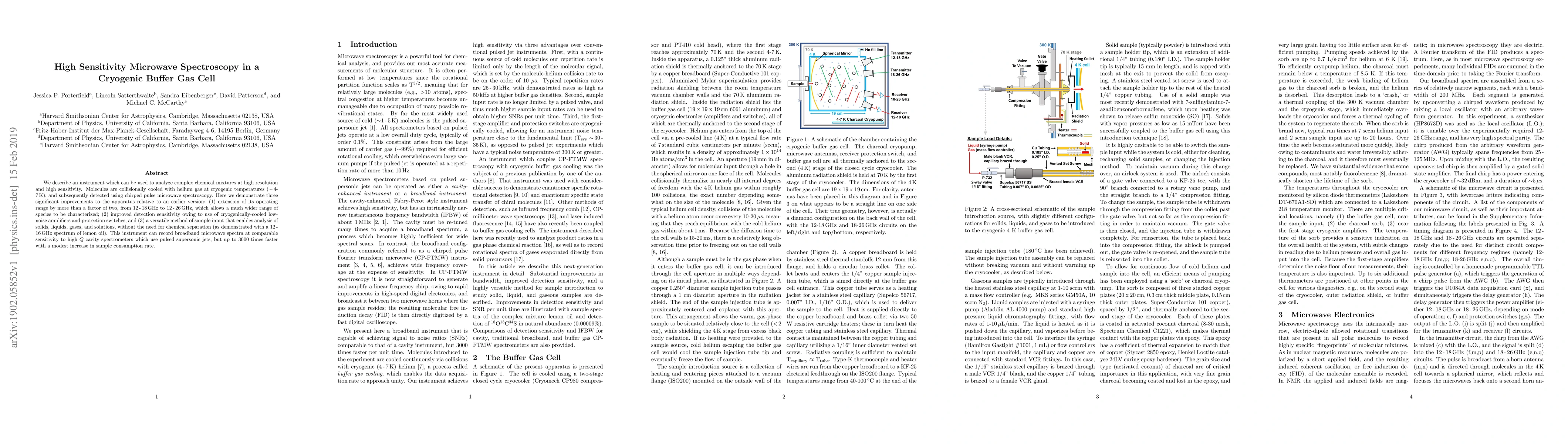 Researchers developed a microwave spectroscopy instrument that can analyze complex mixtures at high resolution and sensitivity using cryogenic buffer gas cooling. The instrument offers improved range, detection sensitivity, and versatility in sample input, making it comparable to high Q cavity spectrometers with faster recording speeds.