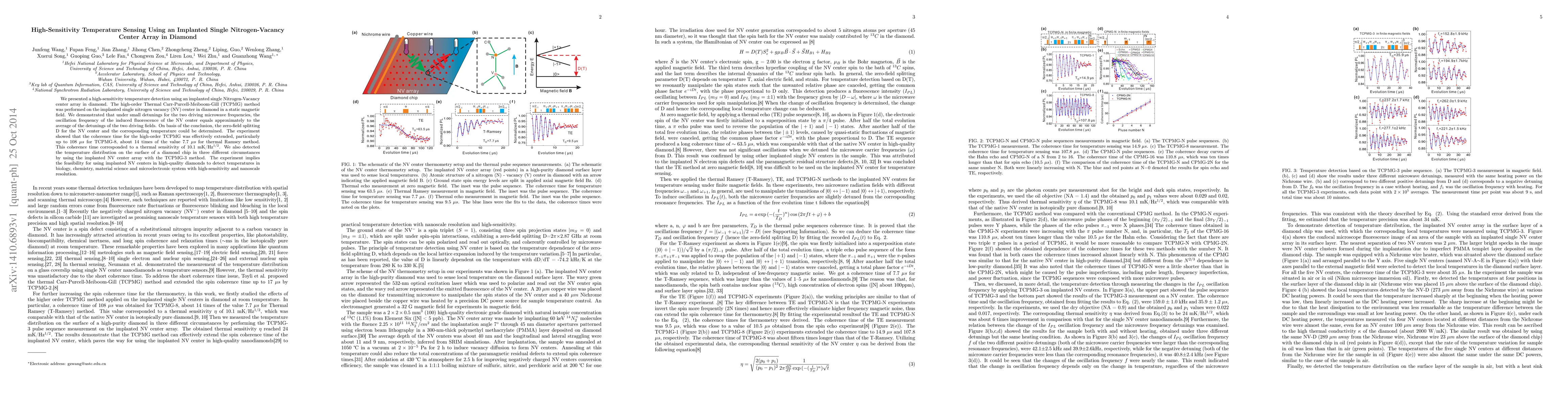 This paper demonstrates high-sensitivity temperature sensing using an implanted single nitrogen-vacancy center array in diamond, achieving a thermal sensitivity of 10.1 mK/Hz1/2 through the high-order TCPMG method, which extends coherence time up to 108 μs. The method shows potential for precise temperature detection in various scientific fields.