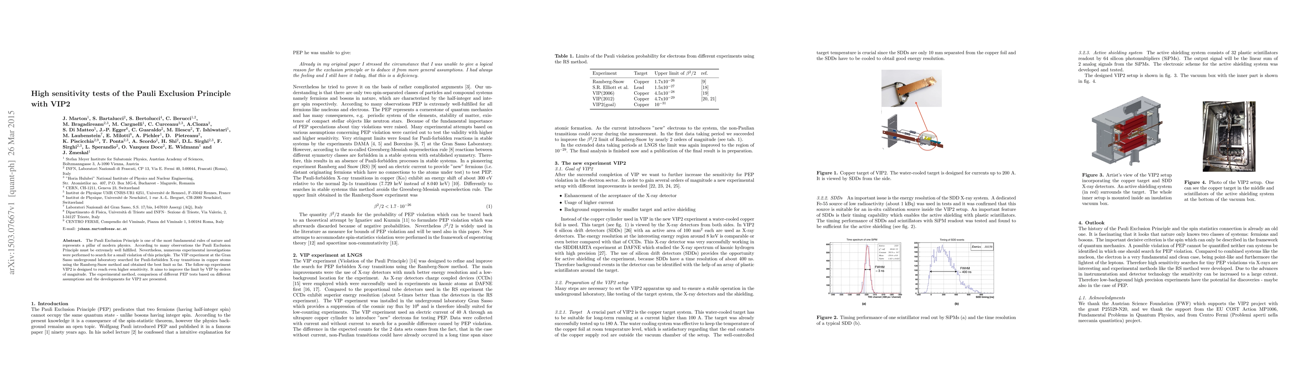 The VIP2 experiment aims to test the Pauli Exclusion Principle with unprecedented sensitivity, seeking to improve upon the previous VIP experiment's limits by orders of magnitude. The paper discusses the experimental method and the advancements made to achieve this heightened sensitivity.