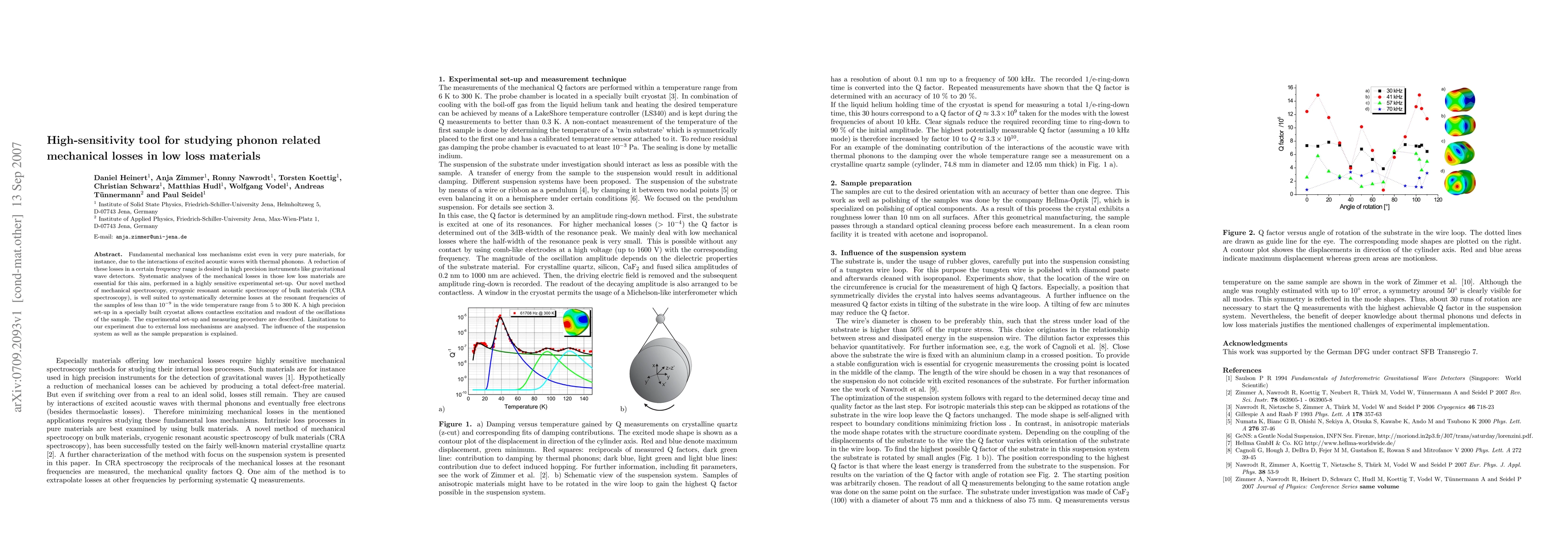 This paper introduces CRA spectroscopy, a high-sensitivity tool for studying phonon-related mechanical losses in low loss materials, achieving precision below 10^(-9) across a temperature range of 5 to 300 K. The method employs a cryogenic resonant acoustic setup in a custom cryostat for contactless oscillation analysis, while discussing experimental limitations and the influence of suspension and sample preparation.