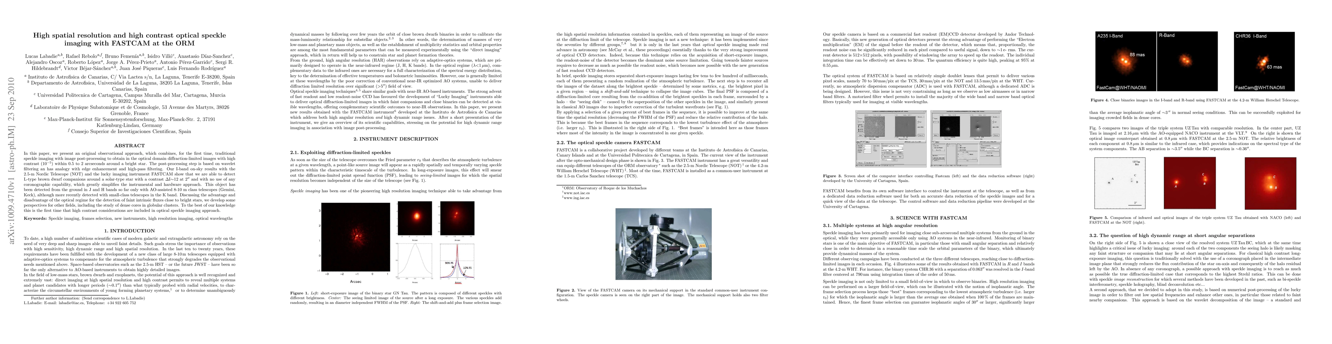 This paper introduces a novel speckle imaging technique combining traditional imaging with wavelet filtering to achieve diffraction-limited optical images with high contrast. The method, tested with the Nordic Telescope and FASTCAM, successfully detects L-type brown dwarfs around solar-type stars, demonstrating the potential for ground-based optical imaging without the need for coronography.