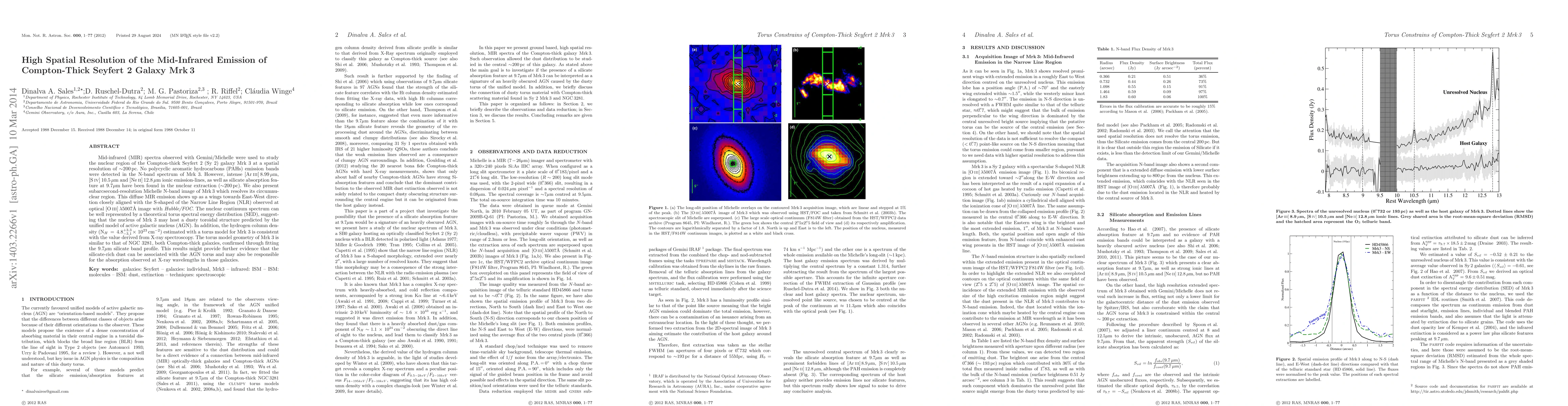 Researchers observed the mid-infrared emission of Mrk3, a Compton-thick Seyfert 2 galaxy, at high spatial resolution, revealing intense ionic emission lines and silicate absorption features that suggest a dusty toroidal structure hosting an AGN.