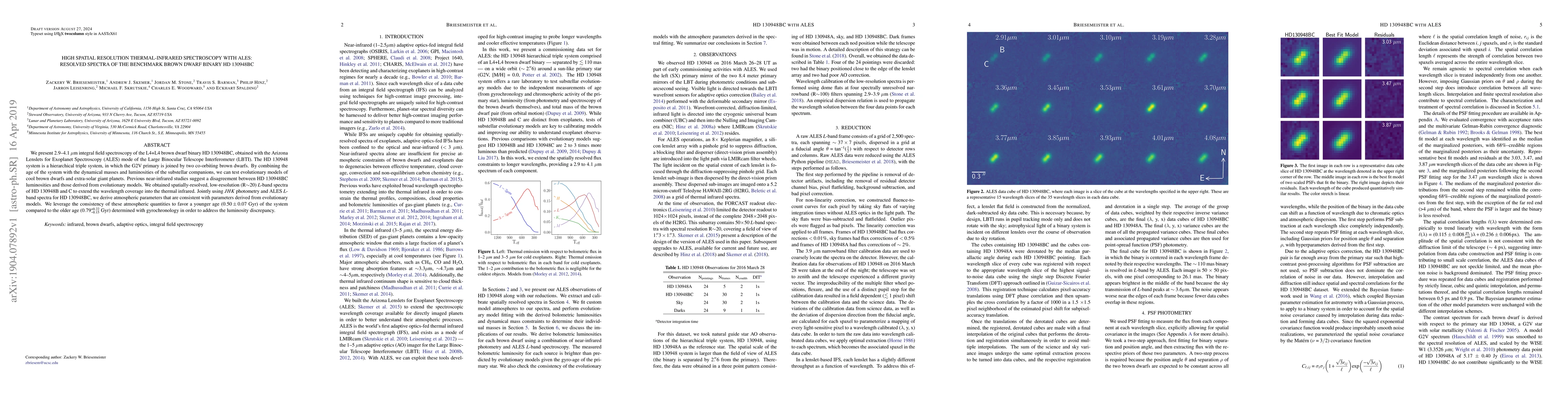We present 2.9-4.1 micron integral field spectroscopy of the L4+L4 brown dwarf binary HD 130948BC, obtained with the Arizona Lenslets for Exoplanet Spectroscopy (ALES) mode of the Large Binocular Telescope Interferometer (LBTI). The HD 130948 system is a hierarchical triple system, in which the G2V primary is joined by two co-orbiting brown dwarfs. By combining the age of the system with the dynamical masses and luminosities of the substellar companions, we can test evolutionary models of cool brown dwarfs and extra-solar giant planets. Previous near-infrared studies suggest a disagreement between HD 130948BC luminosities and those derived from evolutionary models. We obtained spatially-resolved, low-resolution (R~20) L-band spectra of HD 130948B and C to extend the wavelength coverage into the thermal infrared. Jointly using JHK photometry and ALES L-band spectra for HD 130948BC, we derive atmospheric parameters that are consistent with parameters derived from evolutionary models. We leverage the consistency of these atmospheric quantities to favor a younger age (0.50 \pm 0.07 Gyr) of the system compared to the older age (0.79 \pm 0.22 Gyr) determined with gyrochronology in order to address the luminosity discrepancy.