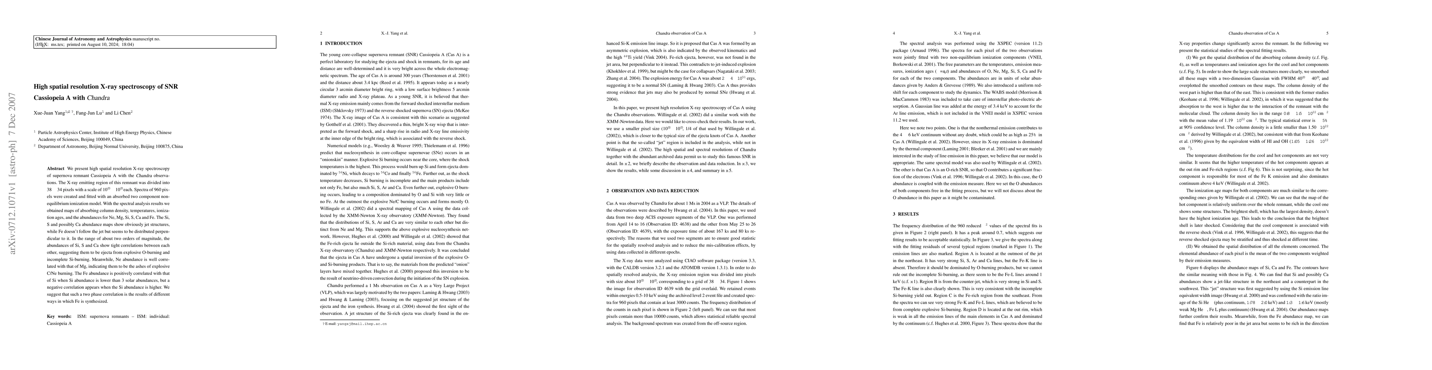 We present high spatial resolution X-ray spectroscopy of supernova remnant Cassiopeia A with the {\sl Chandra} observations. The X-ray emitting region of this remnant was divided into 38 $\times$ 34 pixels with a scale of 10$\arcsec$ $\times$ 10$\arcsec$ each. Spectra of 960 pixels were created and fitted with an absorbed two component non-equilibrium ionization model. With the spectral analysis results we obtained maps of absorbing column density, temperatures, ionization ages, and the abundances for Ne, Mg, Si, S, Ca and Fe. The Si, S and possibly Ca abundance maps show obviously jet structures, while Fe doesn't follow the jet but seems to be distributed perpendicular to it. In the range of about two orders of magnitude, the abundances of Si, S and Ca show tight correlations between each other, suggesting them to be ejecta from explosive O-burning and incomplete Si-burning. Meanwhile, Ne abundance is well correlated with that of Mg, indicating them to be the ashes of explosive C/Ne burning. The Fe abundance is positively correlated with that of Si when Si abundance is lower than 3 solar abundances, but a negative correlation appears when the Si abundance is higher. We suggest that such a two phase correlation is the results of different ways in which Fe is synthesized.