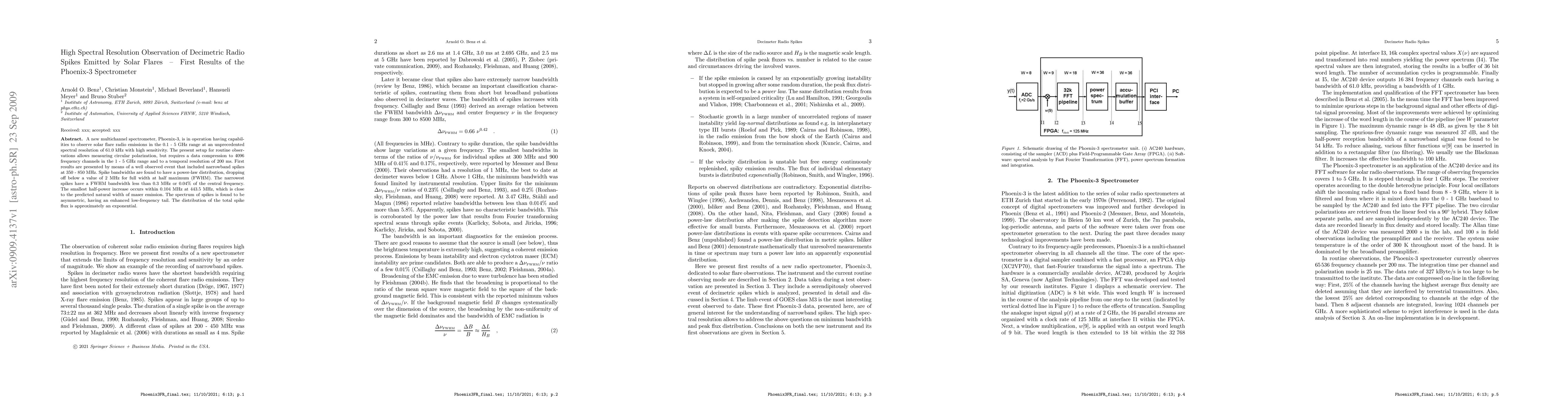 A new multichannel spectrometer, Phoenix-3, is in operation having capabilities to observe solar flare radio emissions in the 0.1 - 5 GHz range at an unprecedented spectral resolution of 61.0 kHz with high sensitivity. The present setup for routine observations allows measuring circular polarization, but requires a data compression to 4096 frequency channels in the 1 - 5 GHz range and to a temporal resolution of 200 ms. First results are presented by means of a well observed event that included narrowband spikes at 350 - 850 MHz. Spike bandwidths are found to have a power-law distribution, dropping off below a value of 2 MHz for full width at half maximum (FWHM). The narrowest spikes have a FWHM bandwidth less than 0.3 MHz or 0.04% of the central frequency. The smallest half-power increase occurs within 0.104 MHz at 443.5 MHz, which is close to the predicted natural width of maser emission. The spectrum of spikes is found to be asymmetric, having an enhanced low-frequency tail. The distribution of the total spike flux is approximately an exponential.