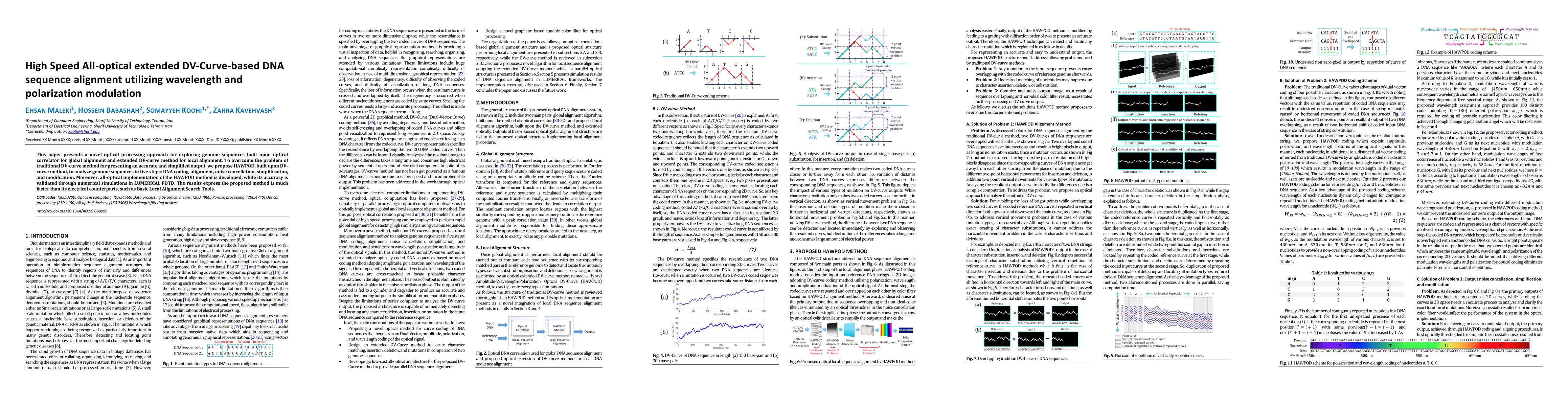 This paper presents a novel optical processing approach for exploring genome sequences built upon optical correlator for global alignment and extended DV-curve method for local alignment. To overcome the problem of traditional DV-curve method for presenting an accurate and simplified output, we propose HAWPOD, built upon DV- curve method, to analyze genome sequences in five steps: DNA coding, alignment, noise cancellation, simplification, and modification. Moreover, all-optical implementation of the HAWPOD method is developed, while its accuracy is validated through numerical simulations in LUMERICAL FDTD. The results express the proposed method is much faster than its electrical counterparts, such as Basic Local Alignment Search Tools.