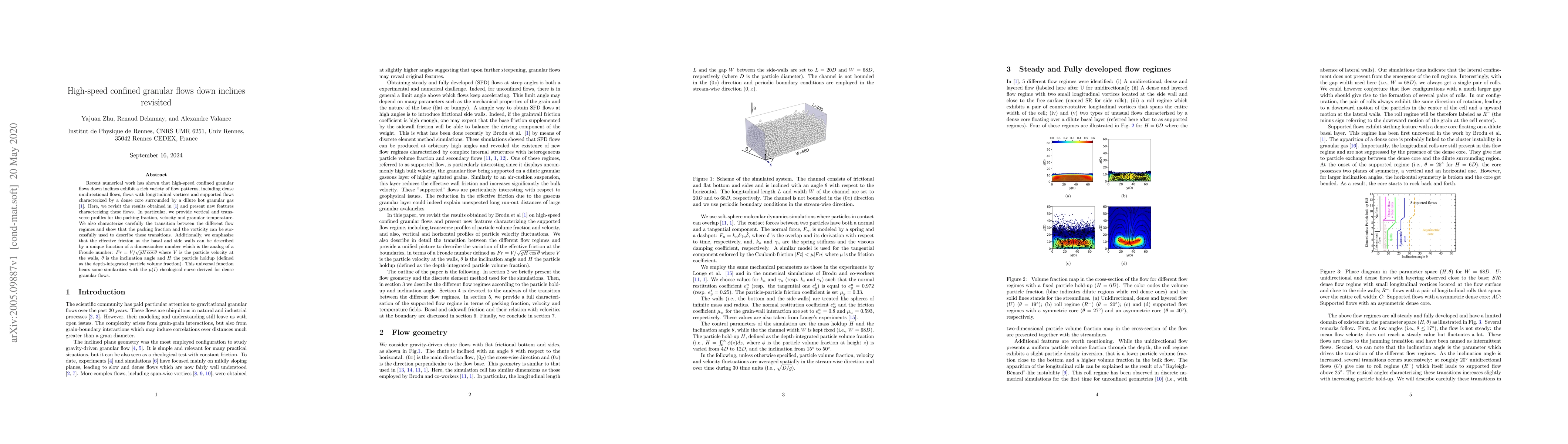 This paper revisits high-speed confined granular flows down inclines, identifying new vertical and transverse profiles for packing fraction, velocity, and granular temperature. It characterizes transitions between flow regimes using packing fraction and vorticity, and introduces a universal function for effective friction analogous to the Froude number.