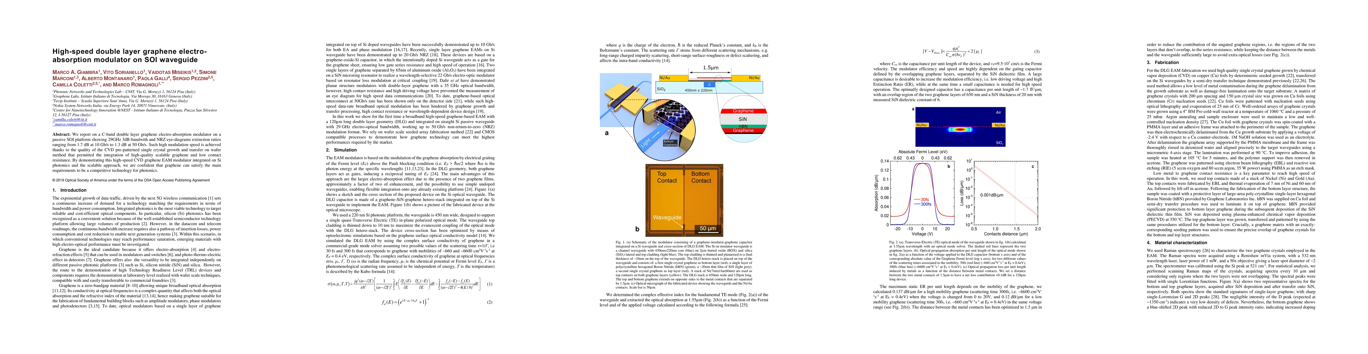 This research presents a high-speed C-band graphene electro-absorption modulator on an SOI waveguide, achieving 29GHz bandwidth and low extinction ratios up to 50 Gb/s, thanks to high-quality CVD graphene integration. The scalable approach suggests graphene as a competitive technology for photonics applications.