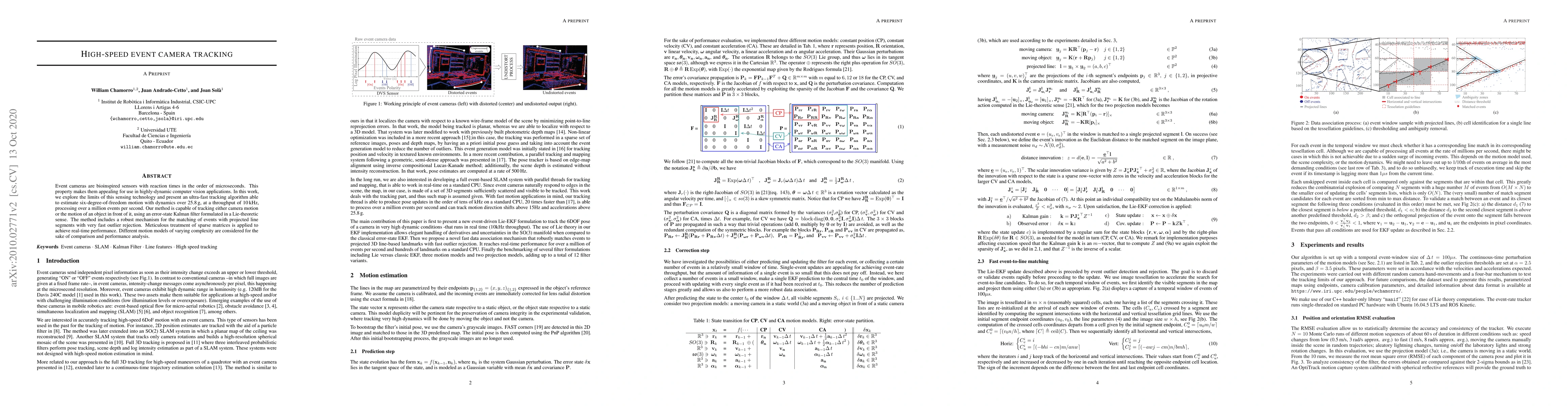 Event cameras are bioinspired sensors with reaction times in the order of microseconds. This property makes them appealing for use in highly-dynamic computer vision applications. In this work,we explore the limits of this sensing technology and present an ultra-fast tracking algorithm able to estimate six-degree-of-freedom motion with dynamics over 25.8 g, at a throughput of 10 kHz,processing over a million events per second. Our method is capable of tracking either camera motion or the motion of an object in front of it, using an error-state Kalman filter formulated in a Lie-theoretic sense. The method includes a robust mechanism for the matching of events with projected line segments with very fast outlier rejection. Meticulous treatment of sparse matrices is applied to achieve real-time performance. Different motion models of varying complexity are considered for the sake of comparison and performance analysis