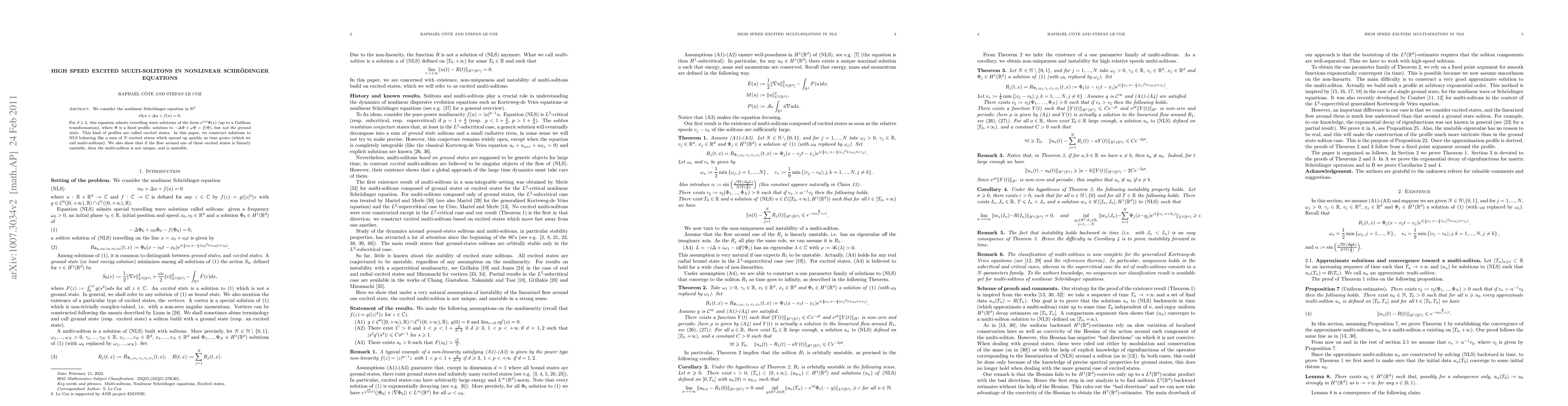 This paper constructs high-speed multi-soliton solutions to the nonlinear Schrödinger equation in dimensions greater than 2, where these solutions behave like a sum of N excited states that rapidly spread over time. It also demonstrates that linear instability around an excited state leads to non-uniqueness and instability of the multi-soliton.