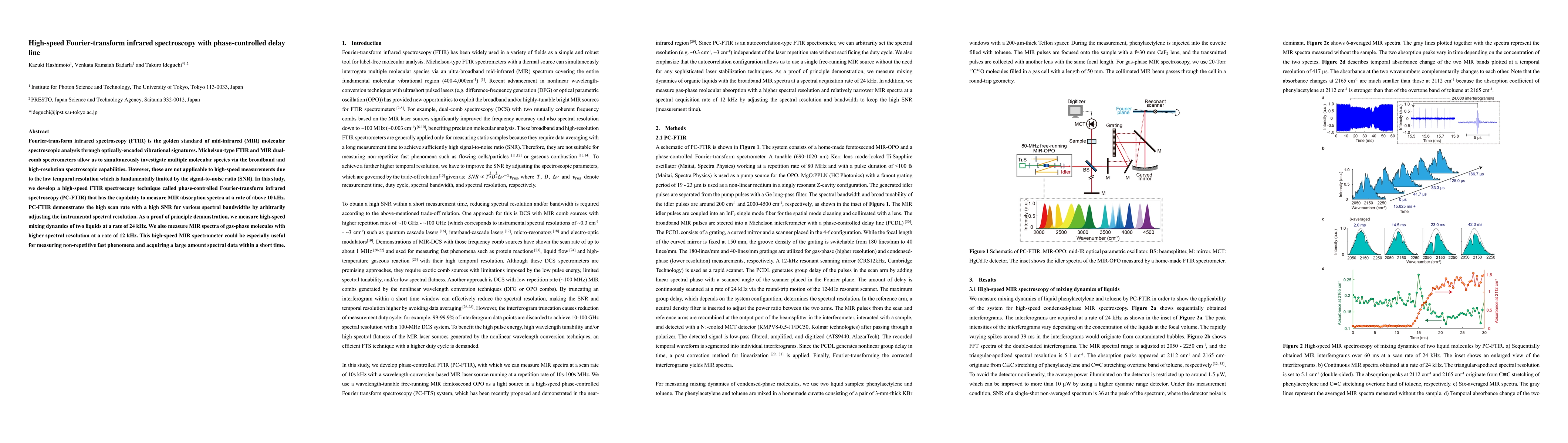 This study introduces phase-controlled Fourier-transform infrared spectroscopy (PC-FTIR), achieving high-speed molecular absorption measurements at rates exceeding 10 kHz with high signal-to-noise ratio, demonstrating its application in measuring fast liquid mixing dynamics and gas-phase molecules.
