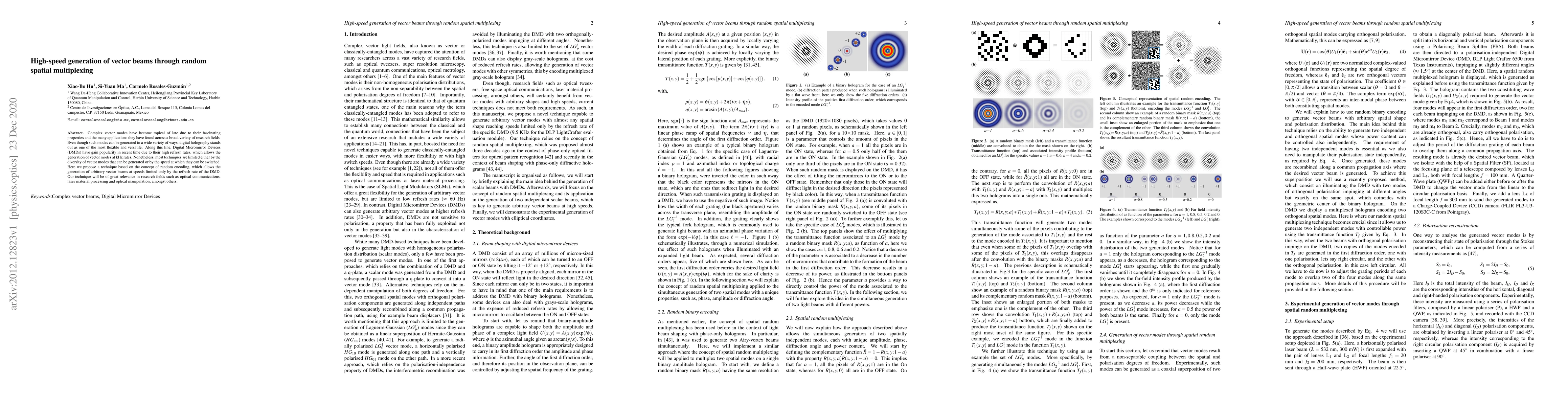 This paper proposes a high-speed technique for generating complex vector beams using random spatial multiplexing with Digital Micromirror Devices (DMDs). The method leverages random encoding to achieve vector mode generation at kHz rates, overcoming limitations in mode diversity and switching speed.