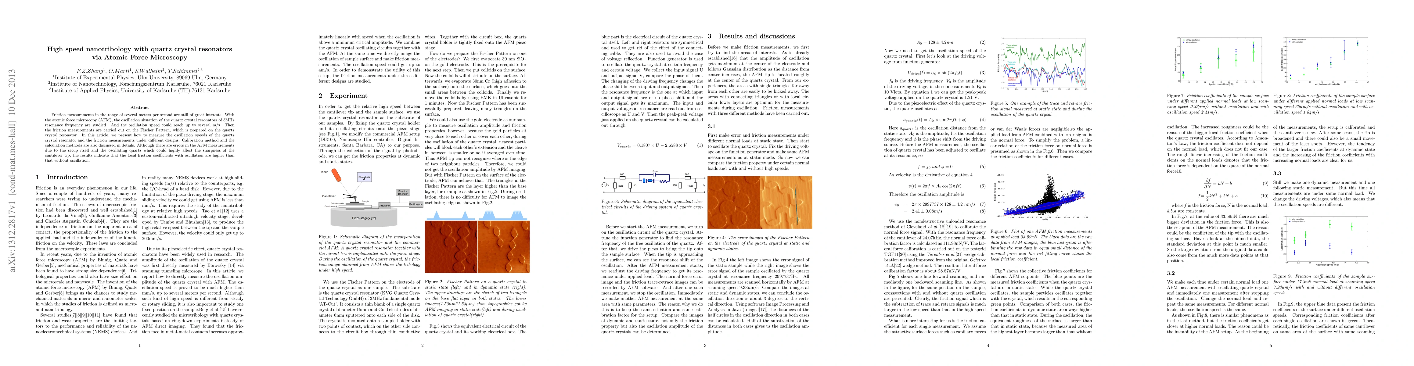 Researchers used atomic force microscopy to measure friction at high speeds of up to several meters per second on a quartz crystal resonator, finding that oscillation increases local friction coefficients.